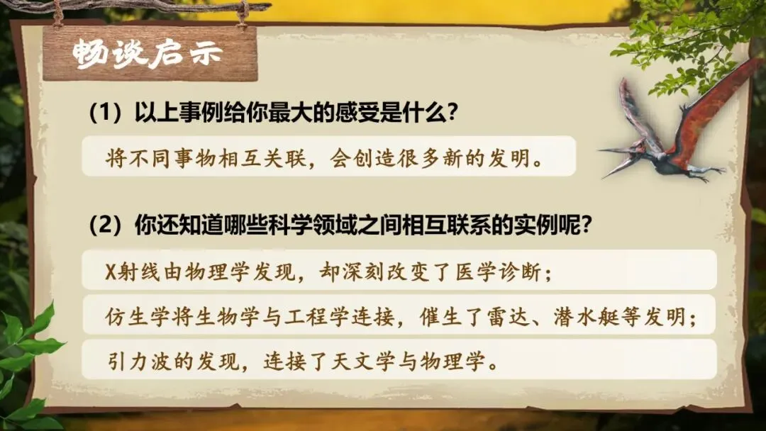 法国科学家帕斯卡尔曾说:“人是一根会思考的芦苇。”科学家们能发现不同领域之间的联系,正是因为他们善于思考,勇于探索。同学们,请带着这种跨界联系的眼光,去观察我们身边的世界——也许,下一个伟大的科学发现,就从你的思考开始!