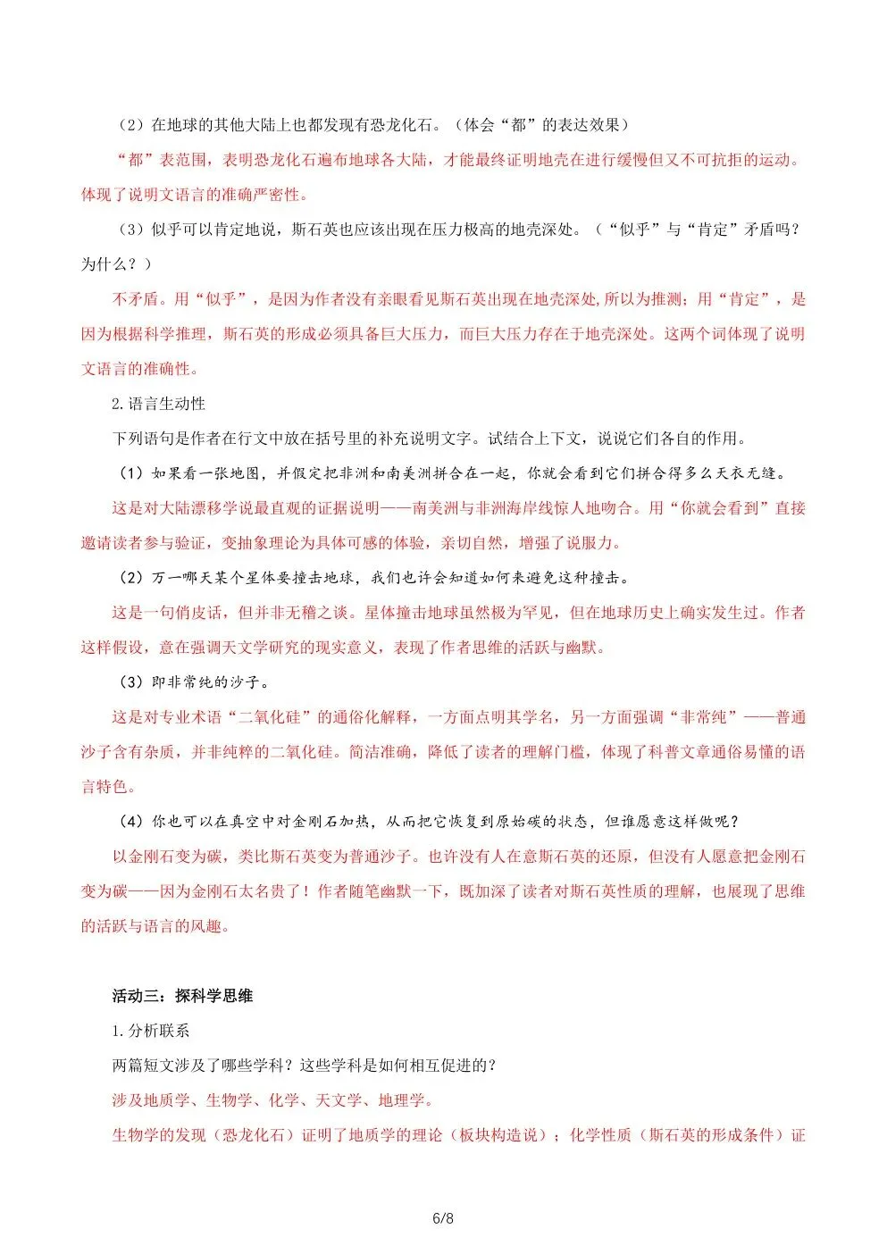 两篇短文都告诉了我们一些科学知识,比如“板块构造”“撞击说”“火山说”“斯石英”“泛大陆”等;
