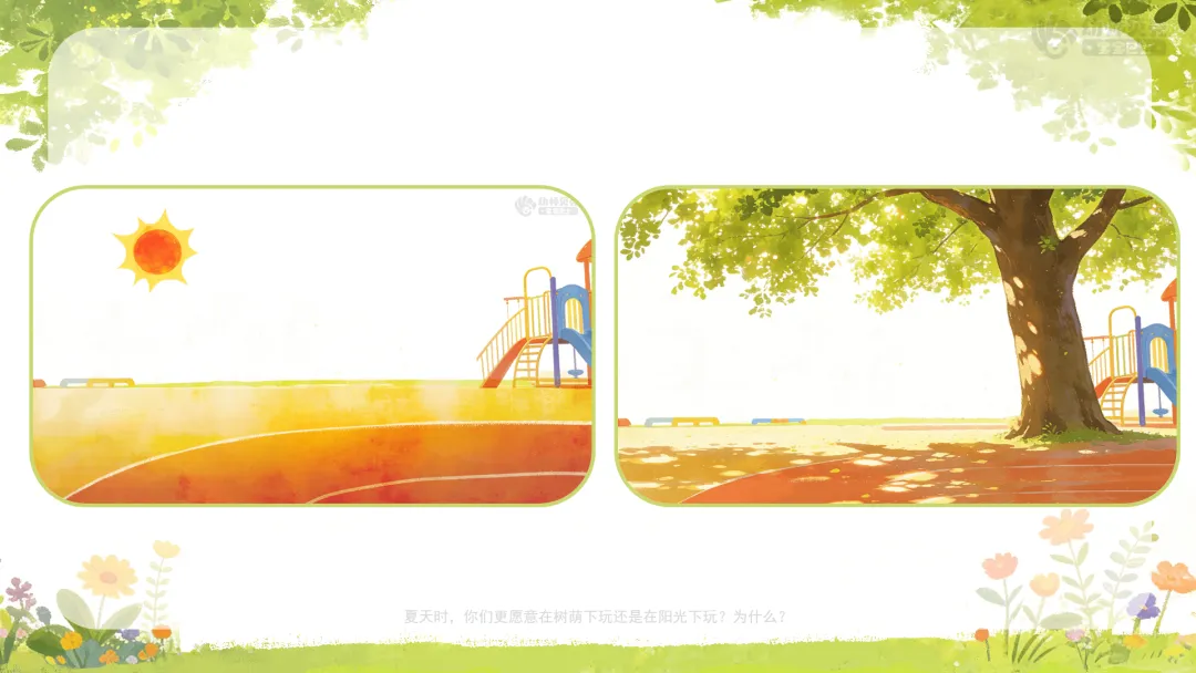 ——夏天时,你们更愿意在树荫下玩还是在阳光下玩?为什么?
