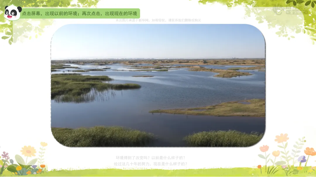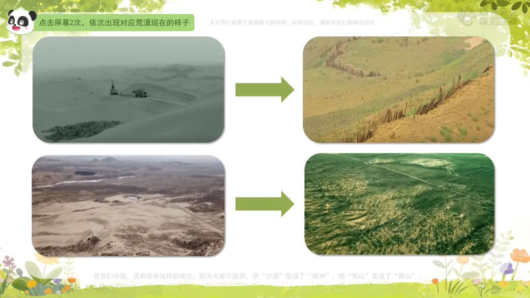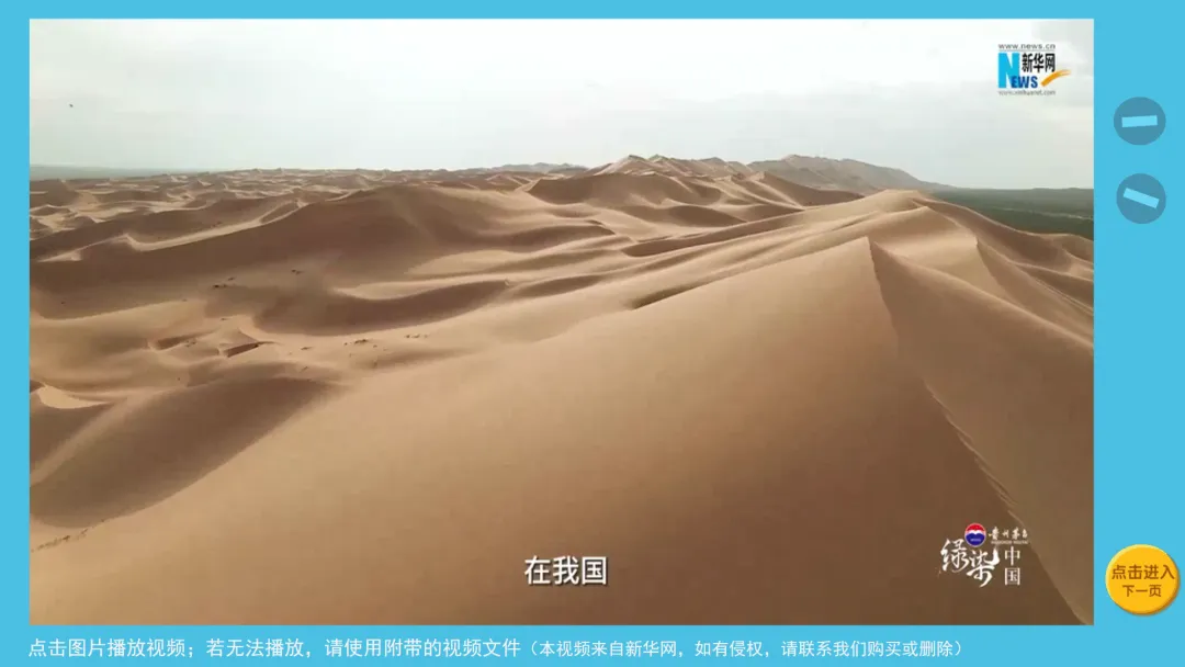 ——在我们中国,还有很多这样的地方,因为大家不放弃,把“沙漠”变成了“绿洲”,把“荒山”变成了“青山”。