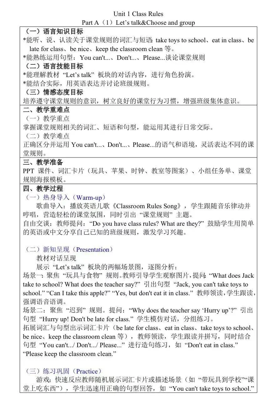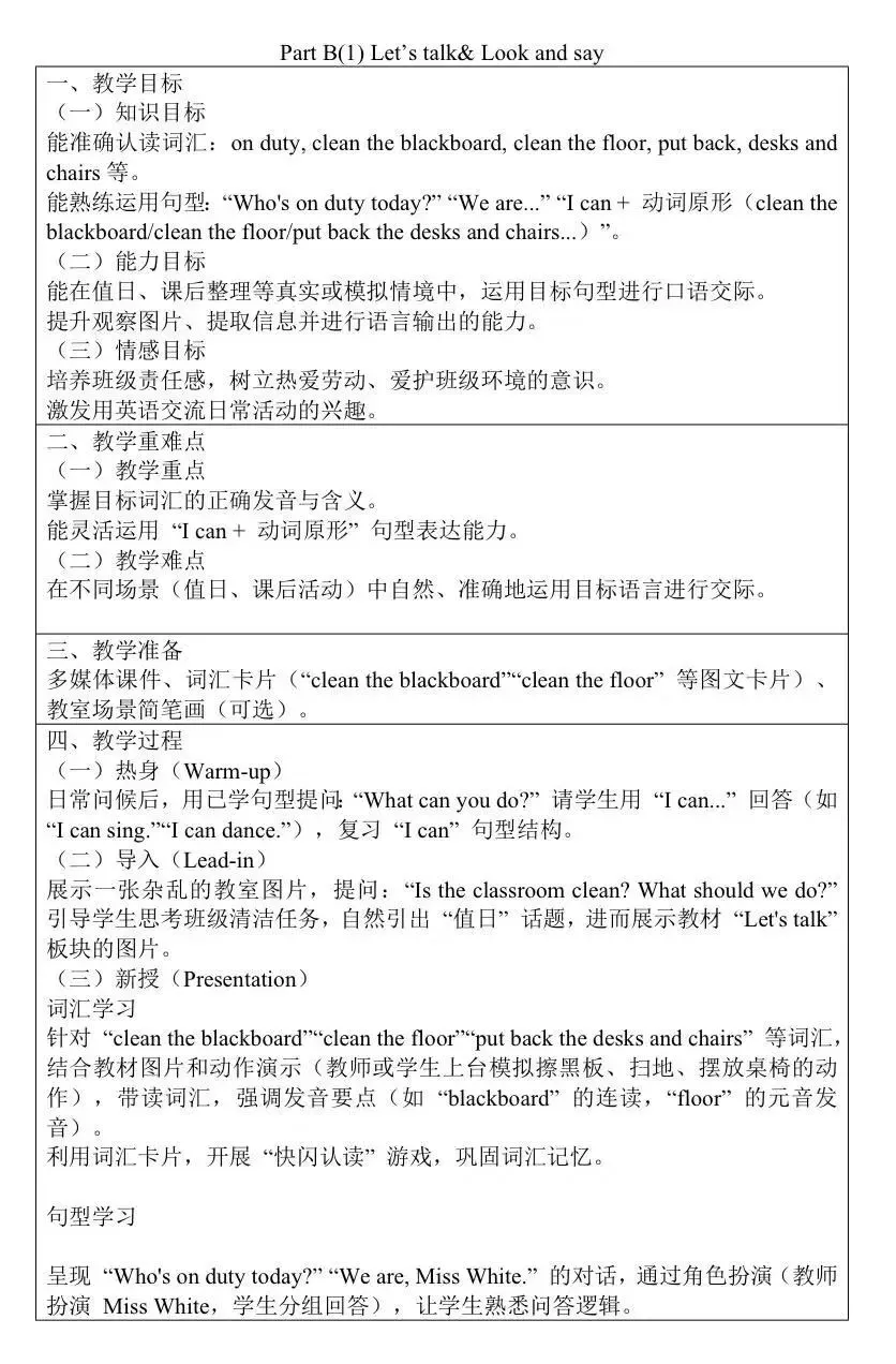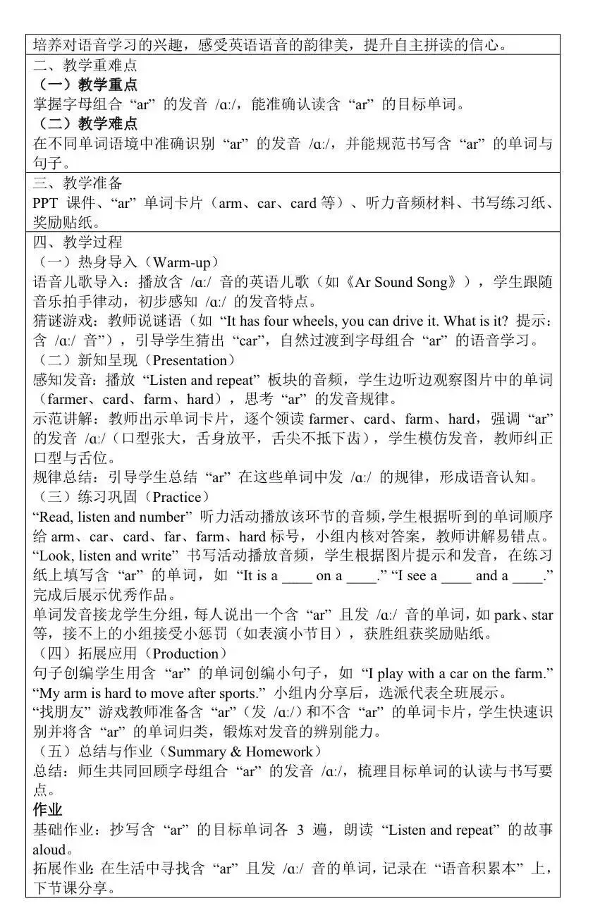 新人教四下英语教案