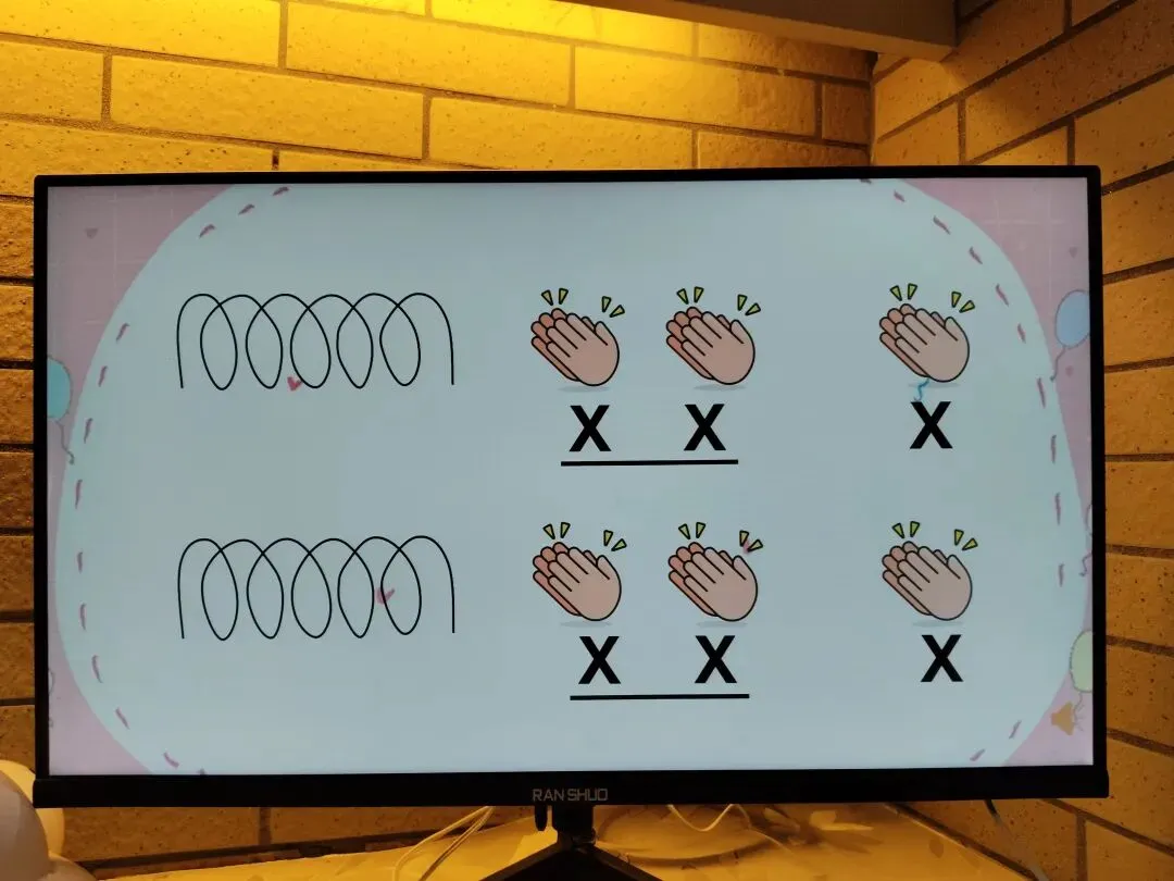 ②师:“咦?我们活动身体的时候头拍了几次?”(幼儿自由回答)如果幼儿忘记就再重复一次,“啰嘞啰嘞啰嘞啰嘞 啪啪啪”