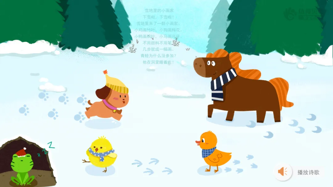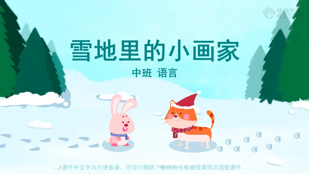l播放诗歌音频及图片《雪地里的小画家》,引导幼儿理解诗歌内容。