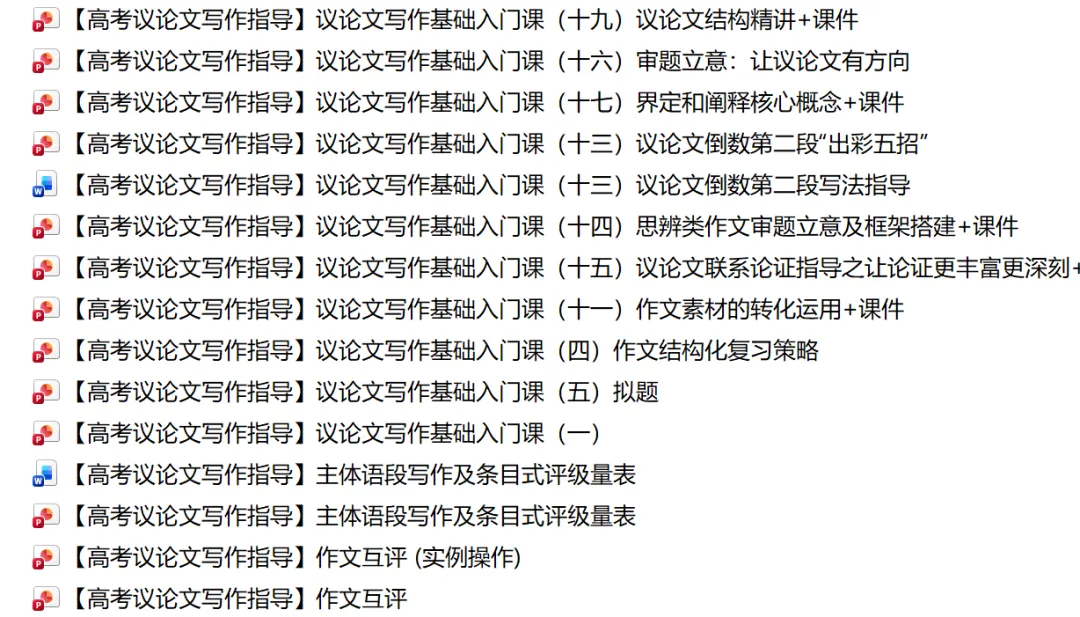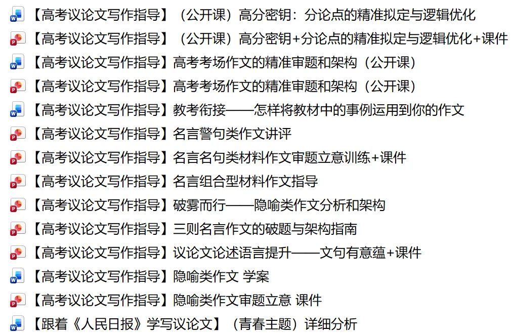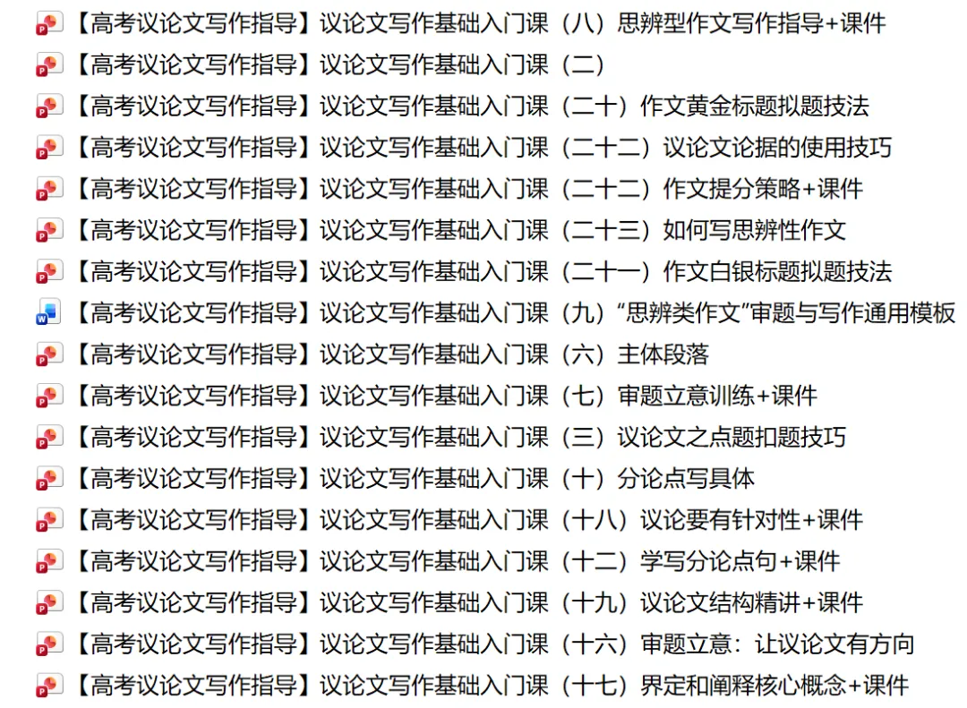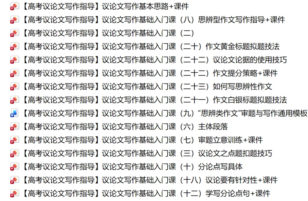 •教案:思辨句式、段落示范、素材集锦、训练习题。