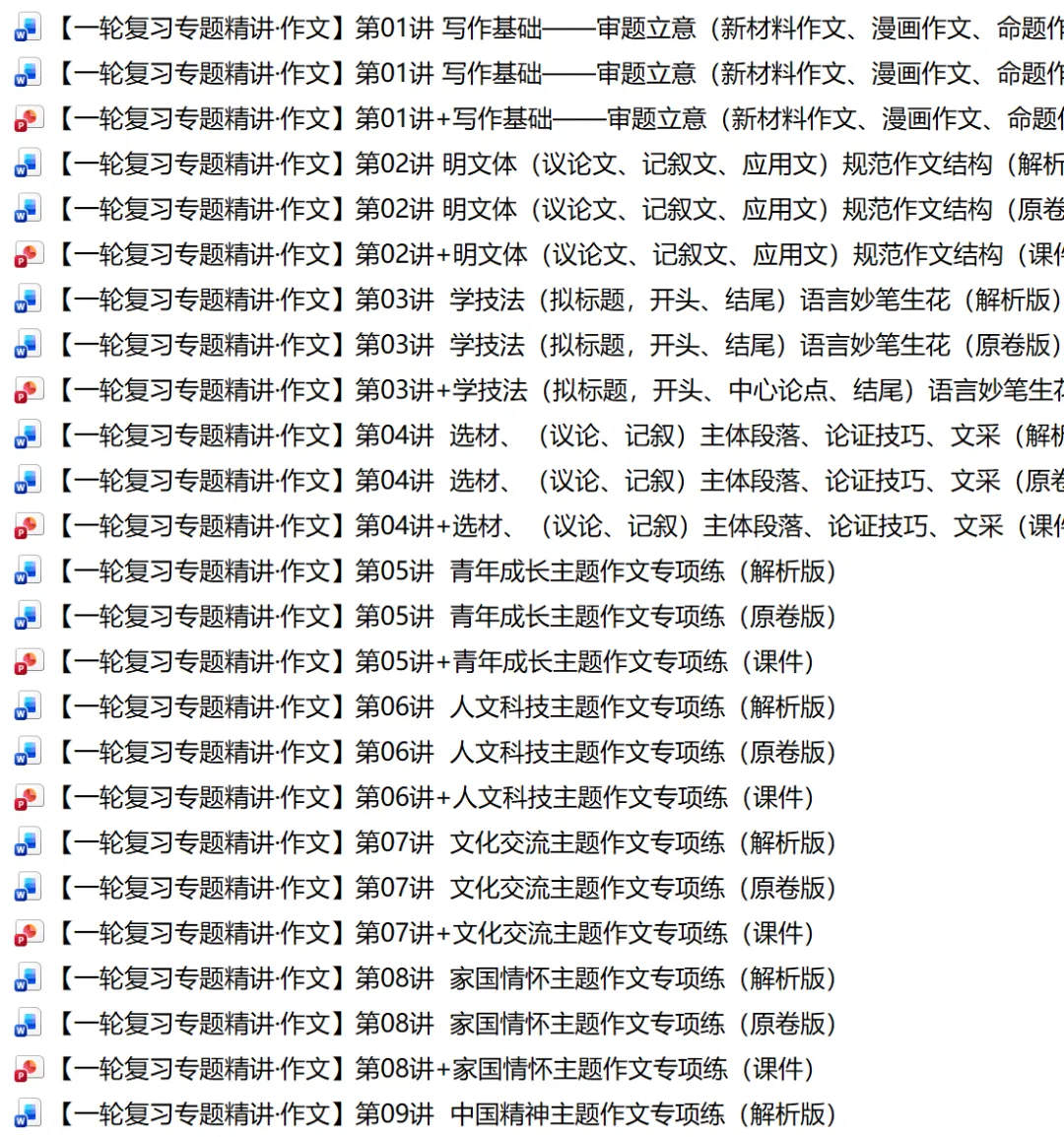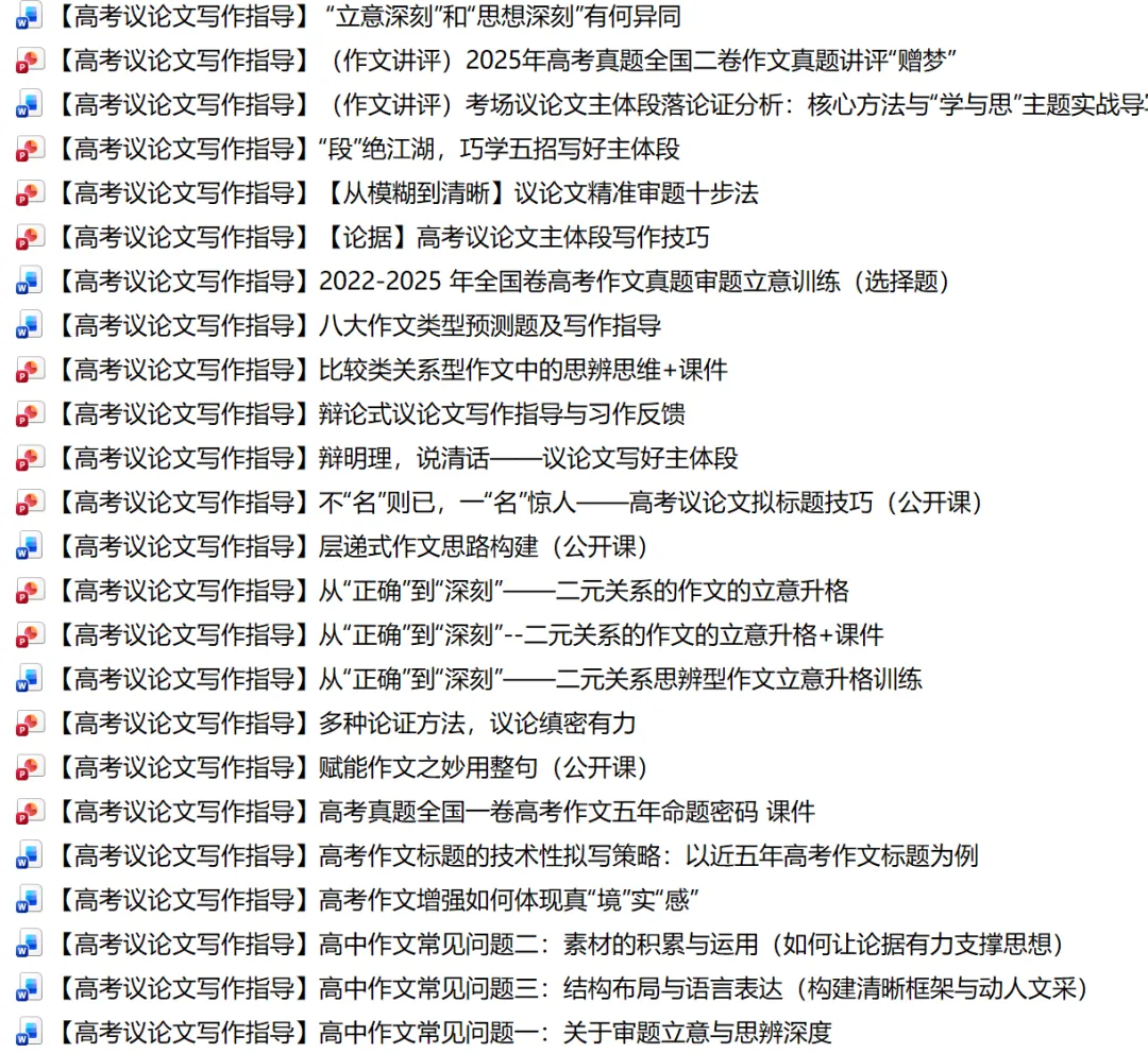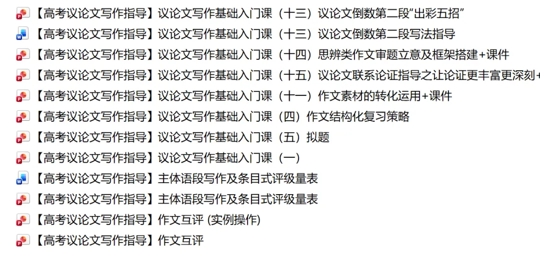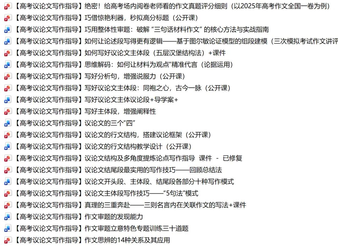 •教案:思辨句式、段落示范、素材集锦、训练习题。
