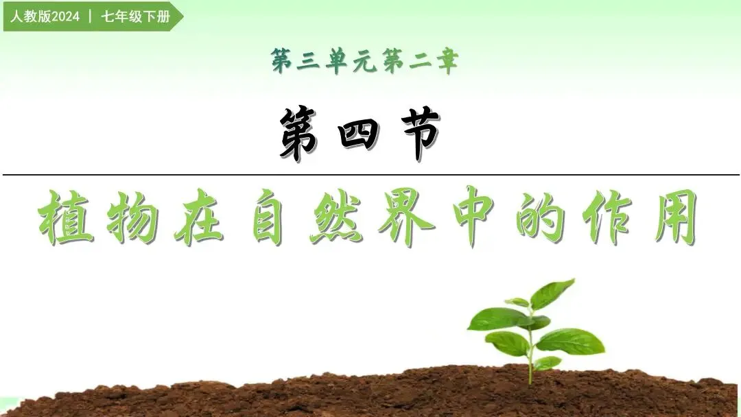 这一期和大家分享的是人教版七年级下册第三单元第二章第四节《植物在自然界中的作用》的课件梳理与说课框架。