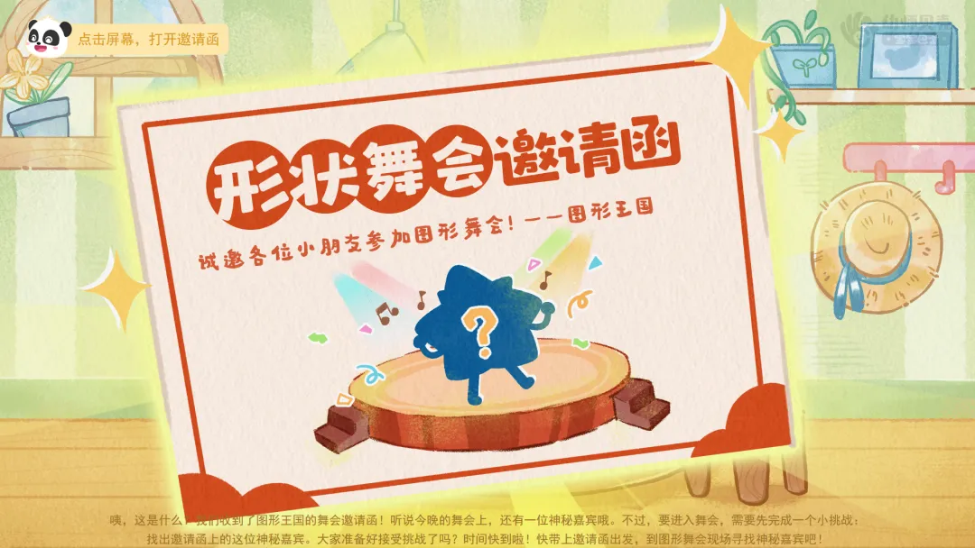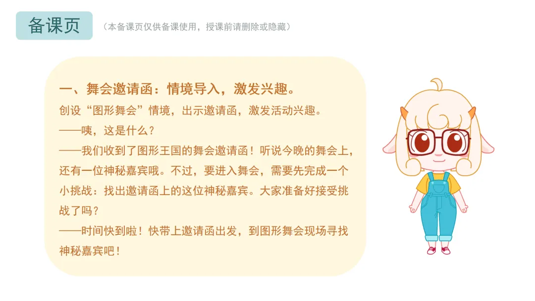 ——我们收到了图形王国的舞会邀请函!听说今晚的舞会上,还有一位神秘嘉宾哦。不过,要进入舞会,需要先完成一个小挑战:找出邀请函上的这位神秘嘉宾。大家准备好接受挑战了吗?