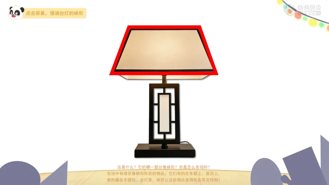 小结:生活中有很多像梯形形状的物品,它们有的在车窗上、屋顶上,有的藏在手提包、台灯里,梯形让这些物品变得既实用又特别!