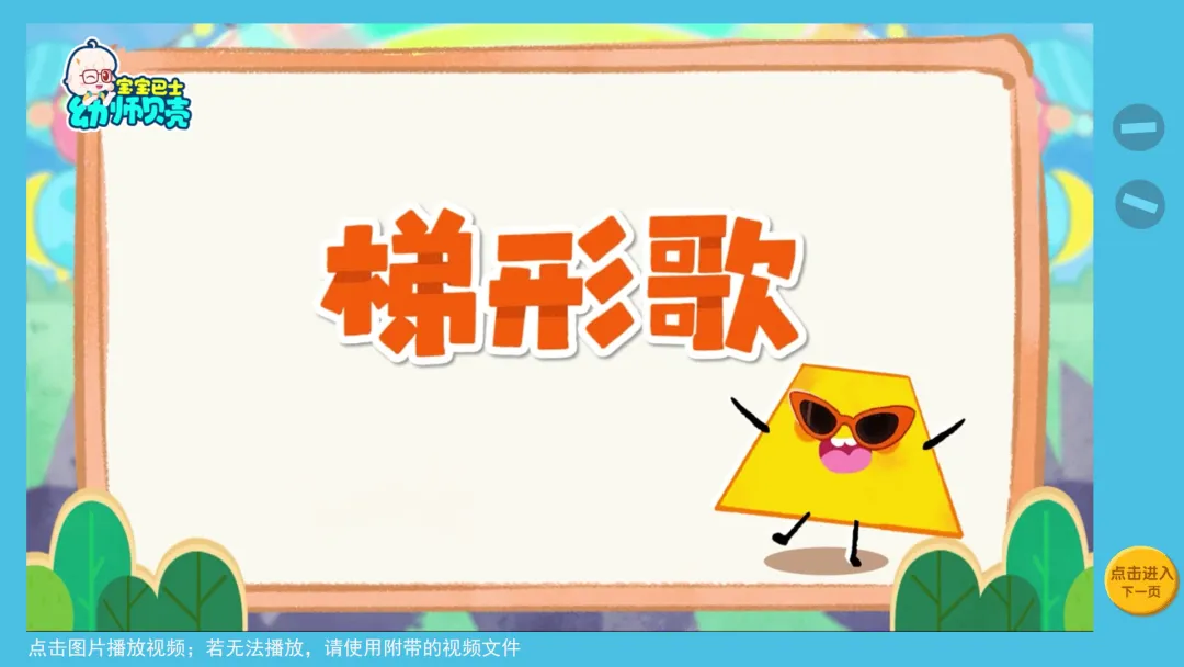 听儿歌,巩固梯形特征,在欢乐的舞会中自然结束活动。
