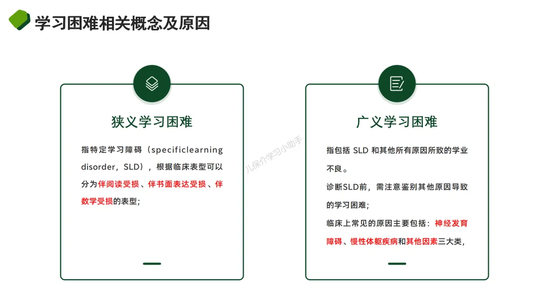 学习困难是指各种原因引起的学业不良,学习成绩长期、持续、显著落后于同龄同年级水平,一般指低于同龄同年级平均水平的两个标准差。
