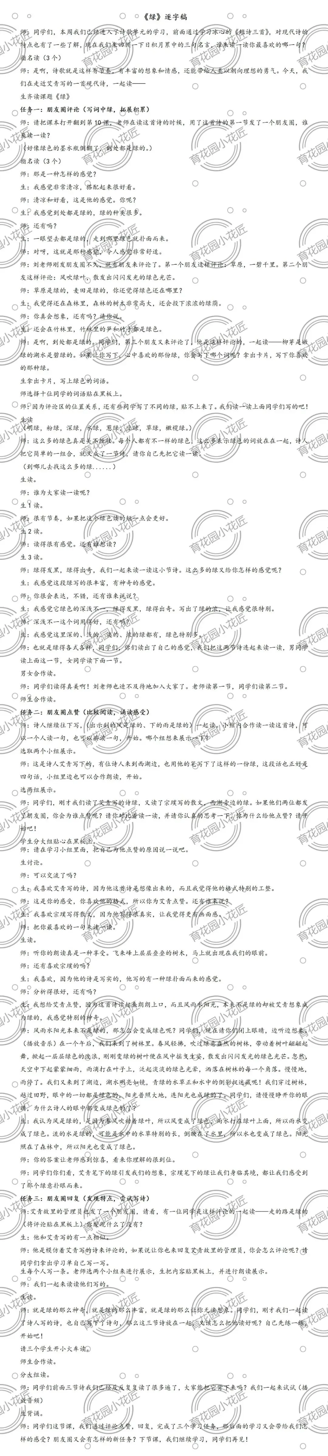 【朋友圈任务】四下10《绿》课件逐字稿教案实录名师课