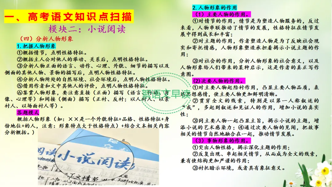 ③分析人物正面的语言、动作、心理、外貌、细节的描写以及侧面的其他人物、景物的描写后,点明人物性格特征。