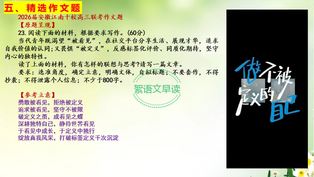 五、精选作文题2026届安徽“江南十校”高三联考作文题