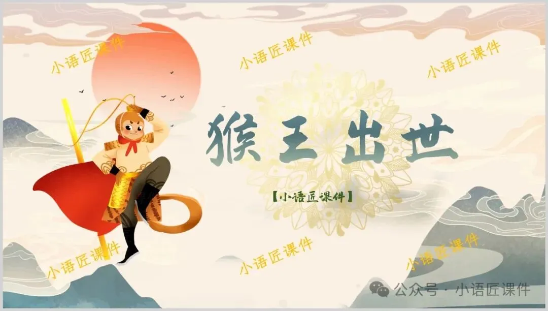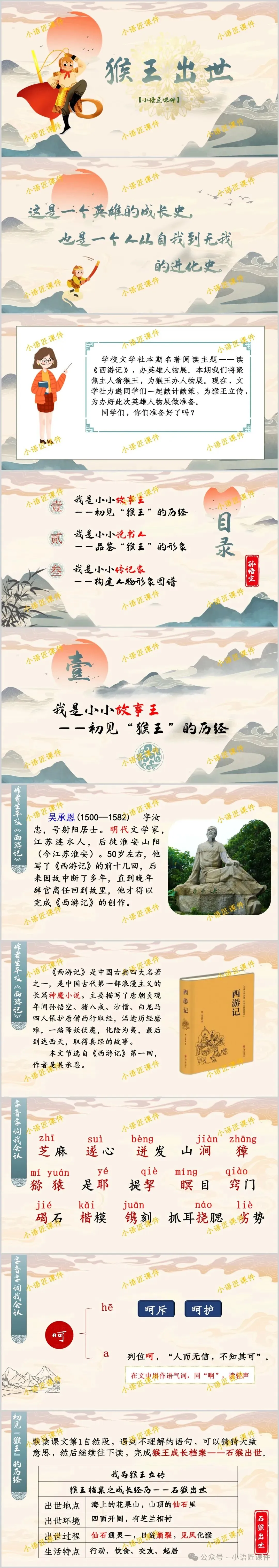 今天给大家分享五年级下册《猴王出世》的独家课件。
