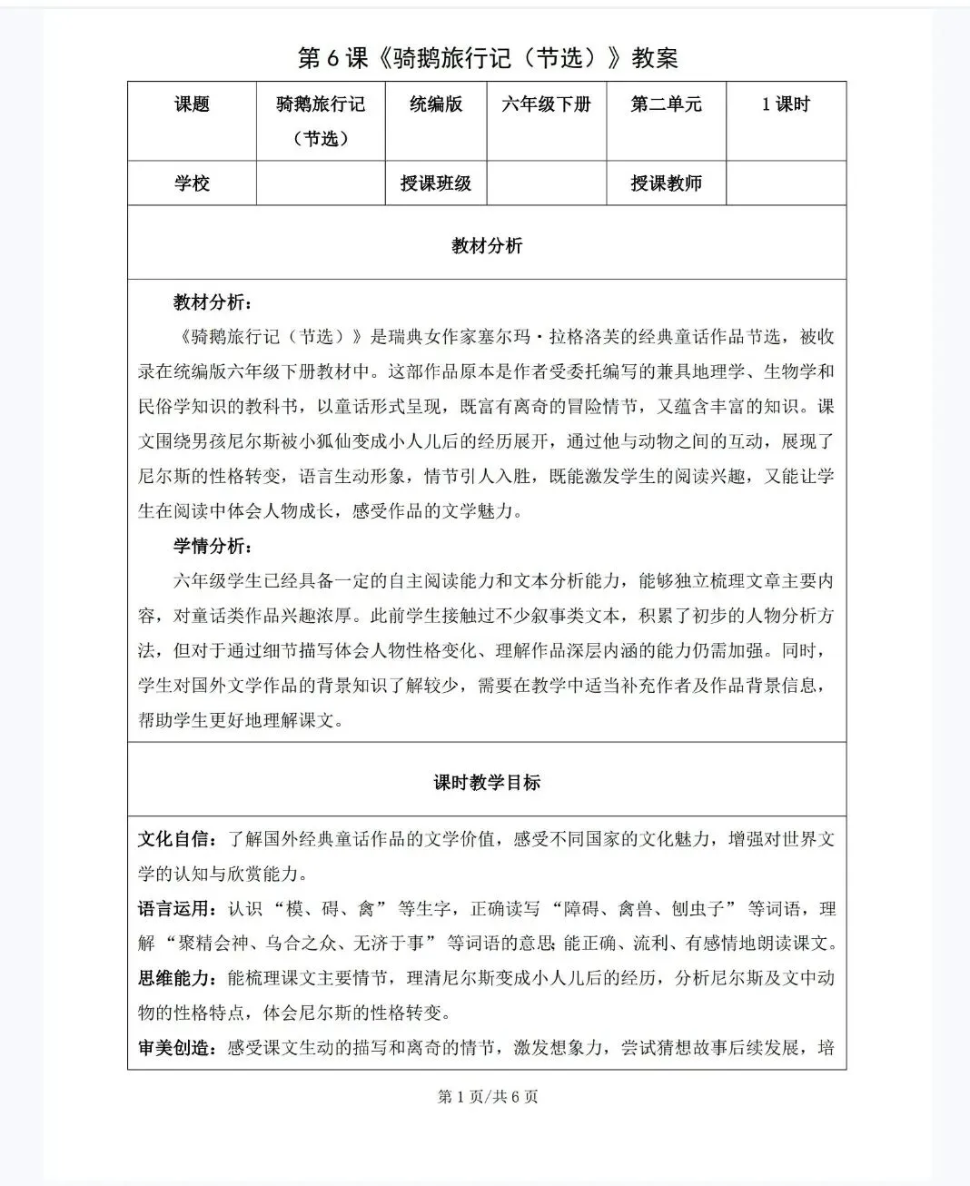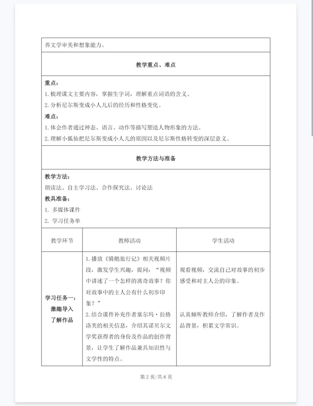 【精品课件】六年级下《2.6骑鹅旅行记(节选)》课件+教学设计+分层作业+学习任务单