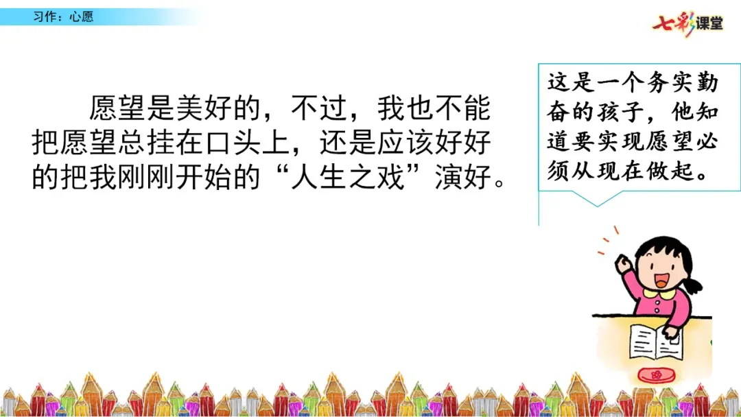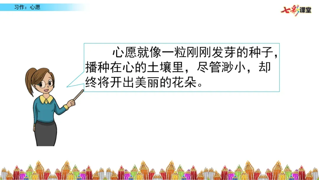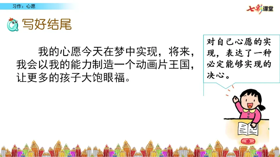 总结全文,升华情感:“这就是我的心愿,我相信,只要努力,这颗种子终会开花...”