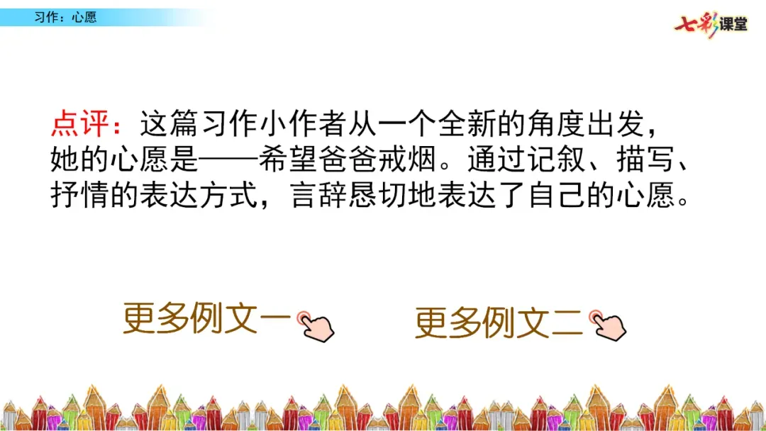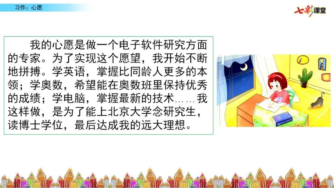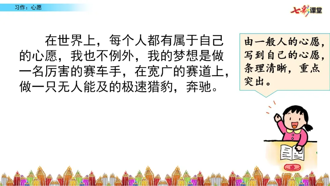 小贴士:选择那个最触动你、最让你有倾诉欲望的心愿,它往往是最好的写作素材。