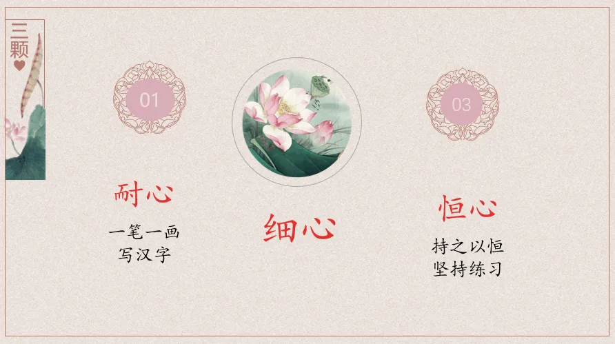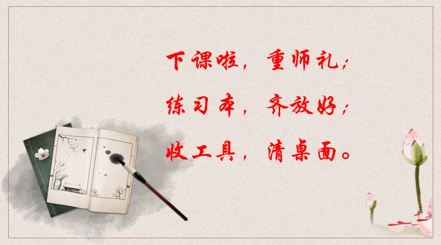 (1)学生观察汉字“疤”(读帖) 观察——汉字笔顺 ——笔画长短与占格 ——结构及书写要点 (2)教师将“疤”字书写要点总结成口诀: 点画悬空 多横等距 钩画右伸 平正美观 (3)教师示范。 (4)学生书写。 (设计目的:这一部分是本节课的重点,讲解“病字头”的写法,从笔顺、书写要点讲解偏旁,清晰直观,练习例字,引导学生学以致用。) 四:学以致用,写一写。 (设计目的:引导学生多练习相关例字。) 五、总结 我们在这一课中学习了5个带有病字头的字,包围结构的字主要注意的是收放的对比和笔画长短的对比。在书写过程中我发现大家写字姿势保持的时间也越来越长了,汉字也越写越美了。 六、下课礼 下课啦,重师礼; 练习本,齐放好; 收工具,清桌面。 (设计目的:引导学生养成好的习惯。) | 调整坐姿, 准备工具, 认真听讲。 认真倾听老师讲解,观察图片,理解坐姿八字要点,对应调整。 复习标准的握笔姿势。 朗读握笔姿势歌(理解记忆)。 仔细观察。 学习“病字头”的书写要点。 观察老师示范,理解记忆。 观察思考“痛”字的书写要点。观察老师示范,理解记忆。 书写。 对比自己的练习,发现优点与不足。 观察思考“疤”字的书写要点。 自主练习“疼、疾、病” 对比思考。 整理物品, 归位桌椅。 |