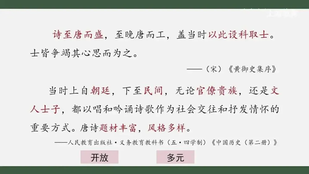 通过今天的学习,我们知道这类现象不仅存在于医药学领域,也广泛存在于文学、艺术、宗教等多个科技文化领域。开放性和多元性是唐朝科技文化的重要特征之一。