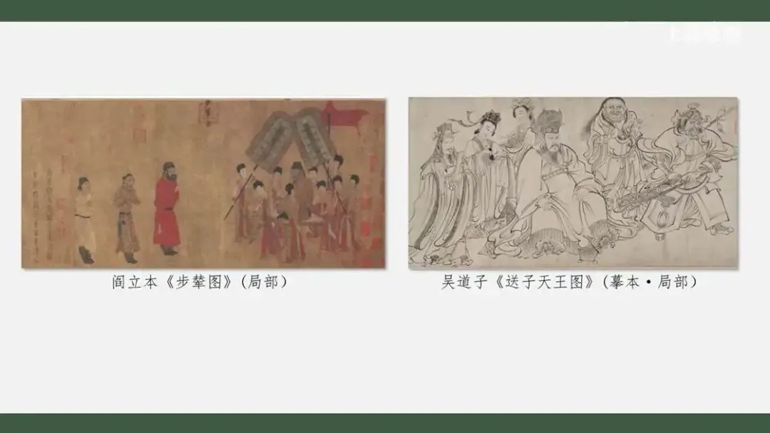 另外,从《步辇图》看,阎立本的绘画讲究用色,色彩饱和度高。而唐朝另外一位著名的画家吴道子在色彩的运用上则非常清淡,有时甚至是不着色的。