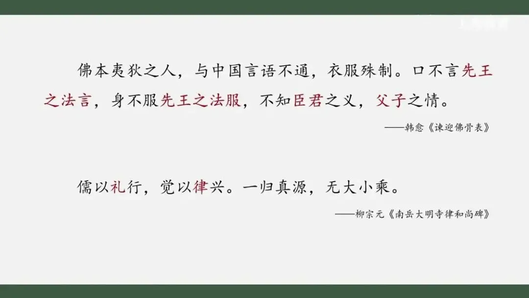 他从维护传统伦理、儒学正统地位出发,强烈抨击佛教。同一时期的柳宗元则认为,儒家的礼与佛教的律都是对个体行为的规范和约束,这是对个体道德修养和精神境界的提升。因此,他主张在两者之间寻找共同点。韩愈、柳宗元既是唐朝著名的文学家,也是杰出的思想家。他们对儒佛关系的思考,正反映了佛教的广泛传播所引发的中国社会的关注和讨论。