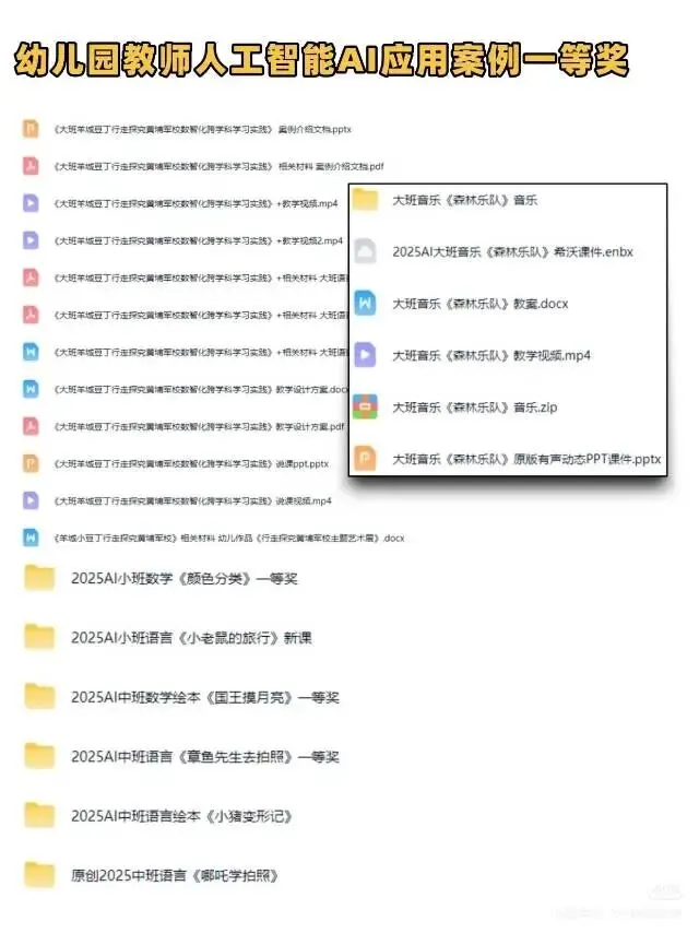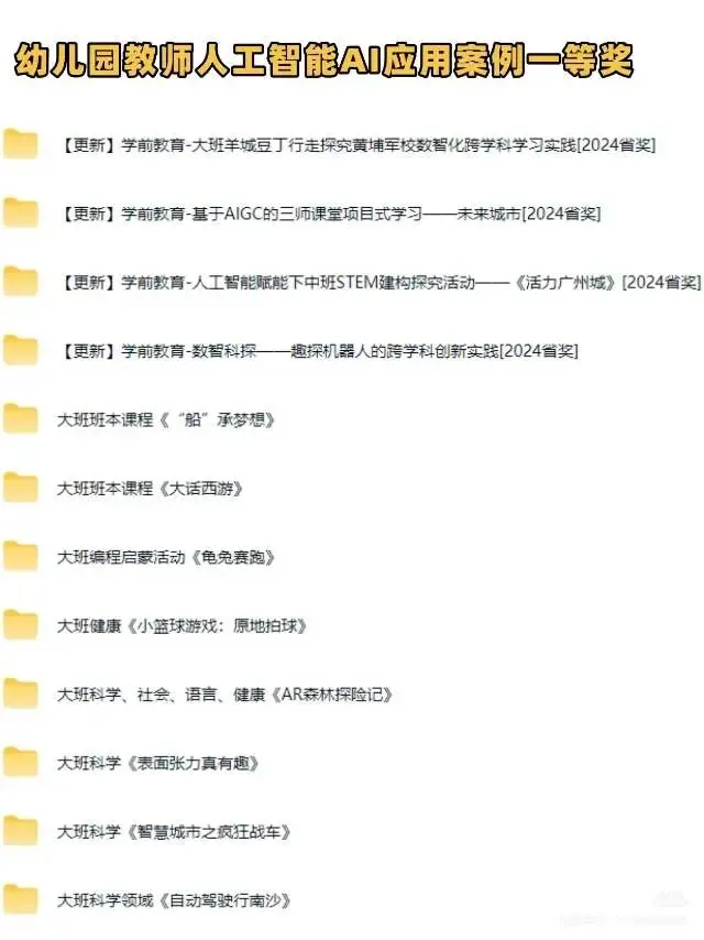✨ 幼儿园AI赋能课件+融合创新案例全套资料!从AI赋能课件、教师智能应用案例,到3D模型大班综合课《太空探险》、万彩动画微课制作教程,还有融合创新教学案例一等奖干货📚不管是备课、做公开课还是提升教学技能,直接拿来就能用!再也不用熬夜找素材啦~