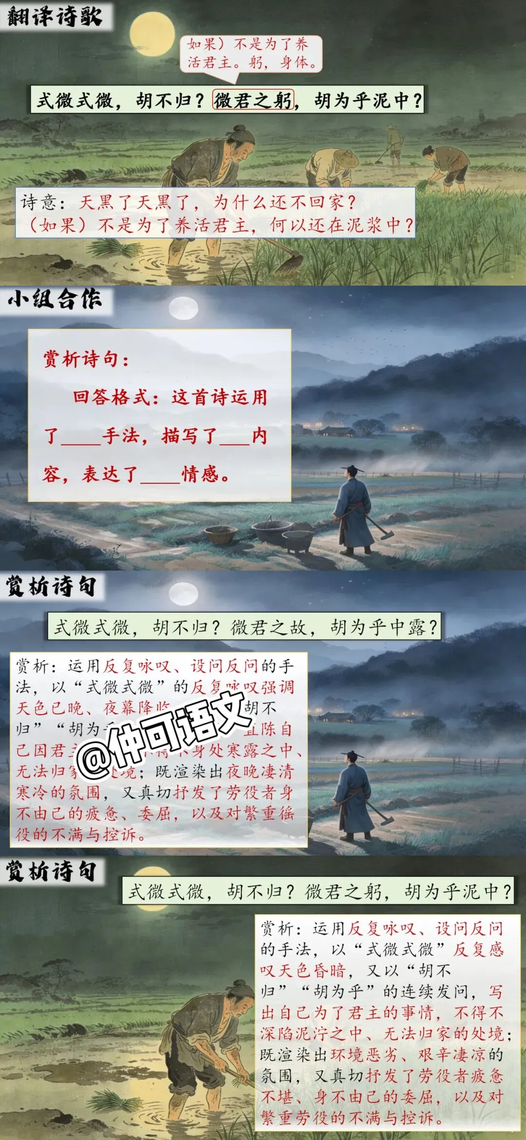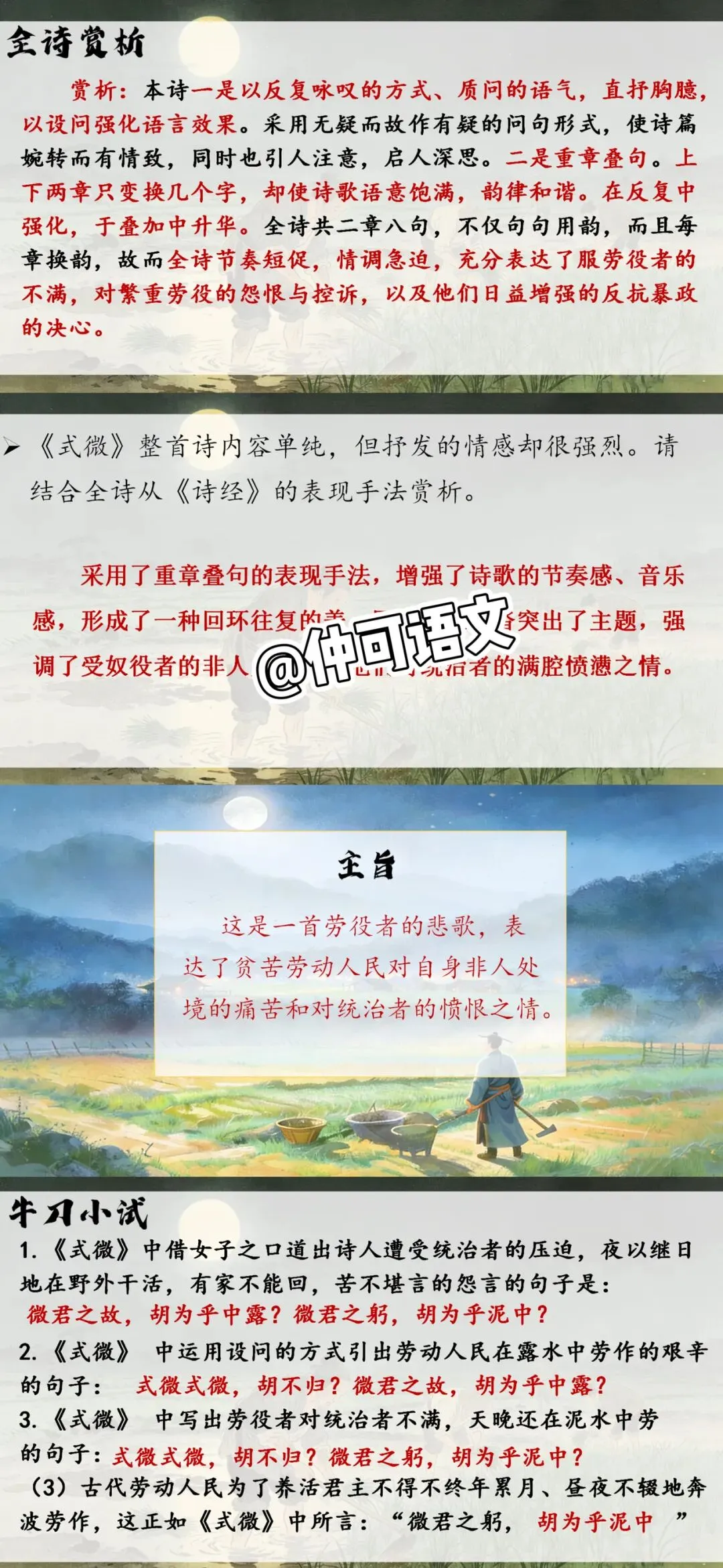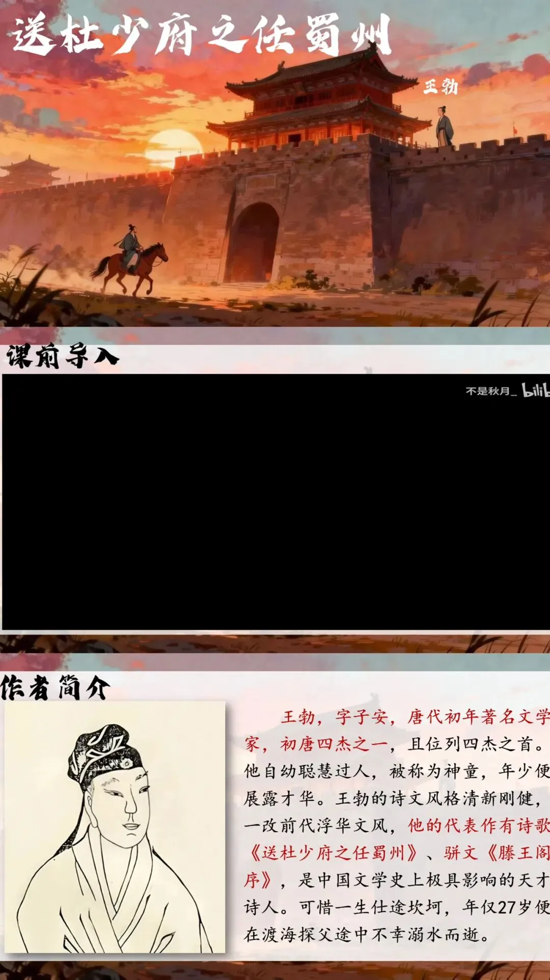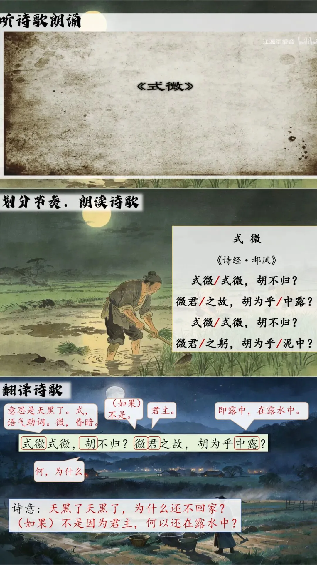 ❣️本课:仅课件 一共四首 共64页❣️每首诗歌都附带朗诵视频还有课前导入视频资料~ ❣️课件思路:导入,介绍作者、背景,听诗歌音频朗诵,划分节奏、读诗歌;接着就是翻译诗句,然后再以小组合作的方式去赏析诗歌,再概括主旨,最后有几道默写题练习哦🥳 ❣️诗歌篇目:《式微》《子衿》《送杜少府之任蜀州》《望洞庭湖赠张丞相》