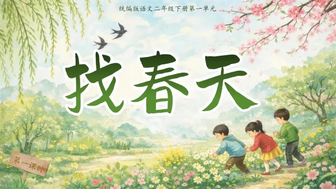 师:让我们和课文中的孩子们一起,到田野里去寻找春天!请大家齐读课题。
