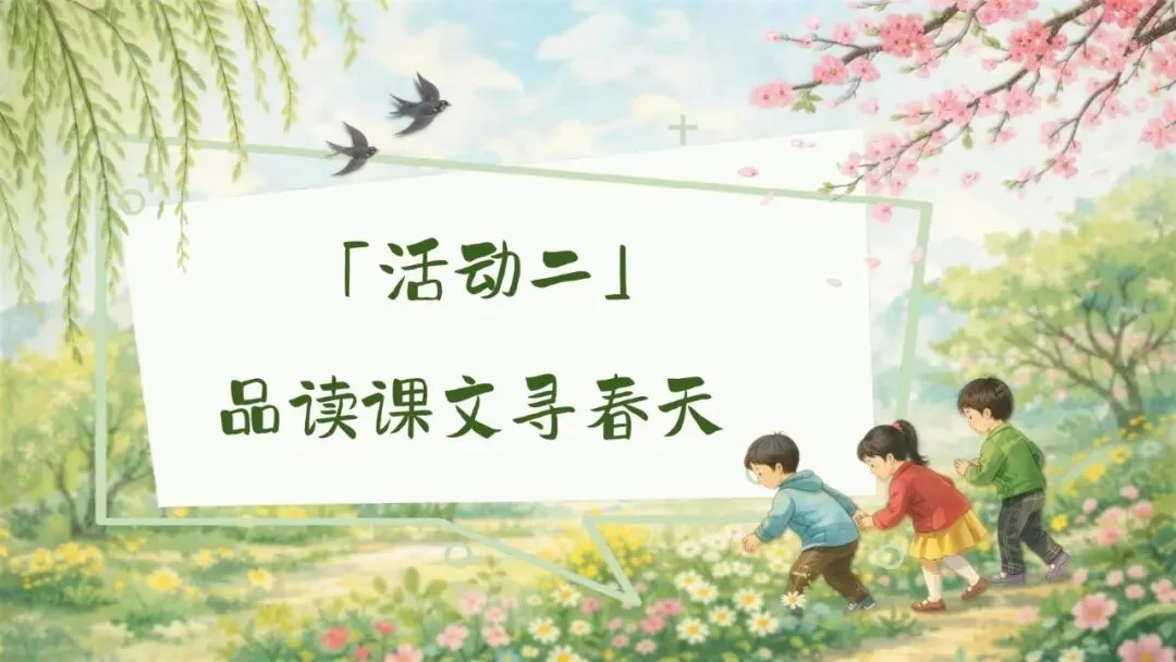 情境描述:春姑娘寄来神秘邀请函,邀请二年级的孩子们当"春天小使者",完成四个探春任务:跟着古诗寻找诗人笔下的春天,到田野里寻找春天的眉毛、眼睛和音符,走一走开满鲜花的小路,和邓爷爷一起种下希望的小树苗。完成任务后,制作一本属于自己班级的"春天的画册"!