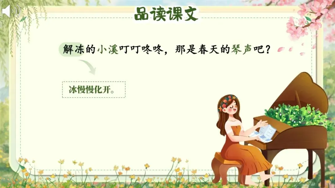•解冻的小溪叮叮咚咚,那是春天的琴声;