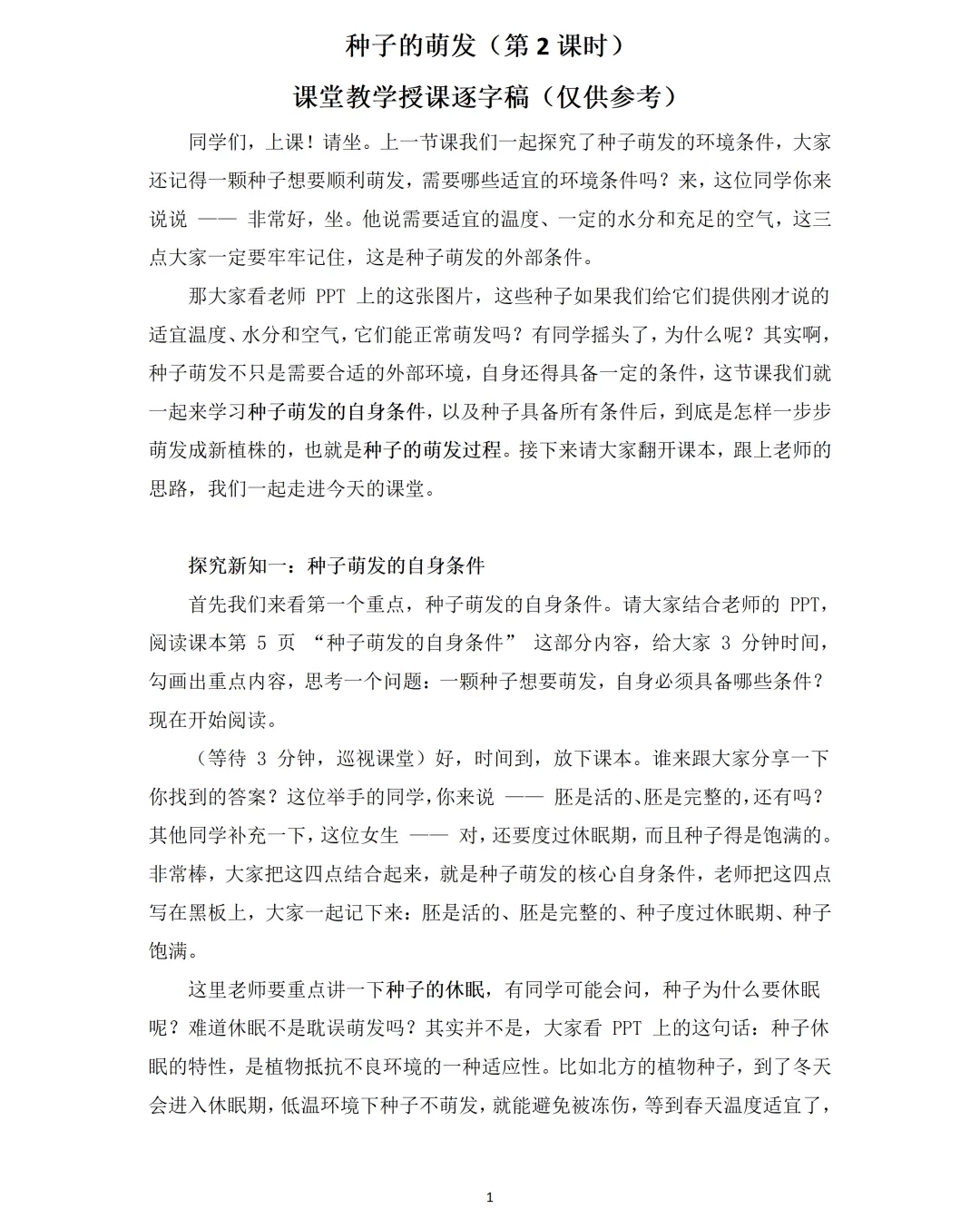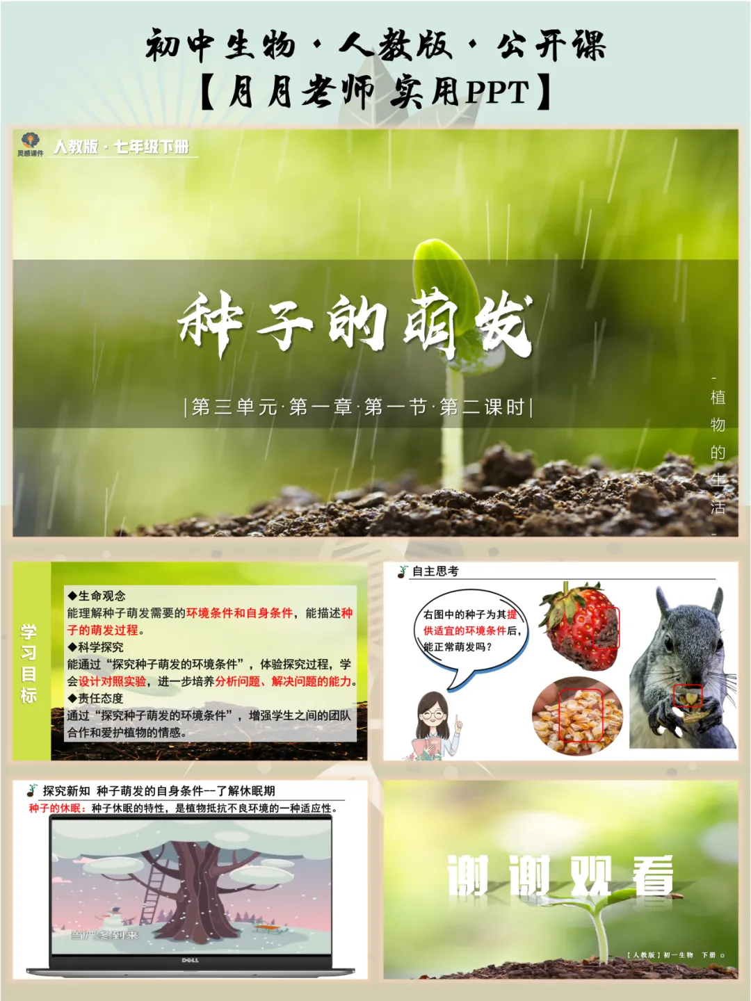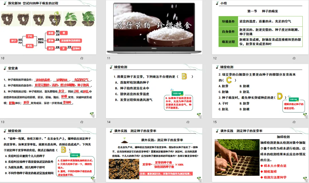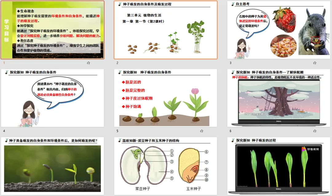 好的课堂导入总能瞬间抓住注意力!这节课开篇就抛出灵魂拷问,搭配直观图片,让学生主动思考 “种子萌发除了环境条件,还需要什么?”。
