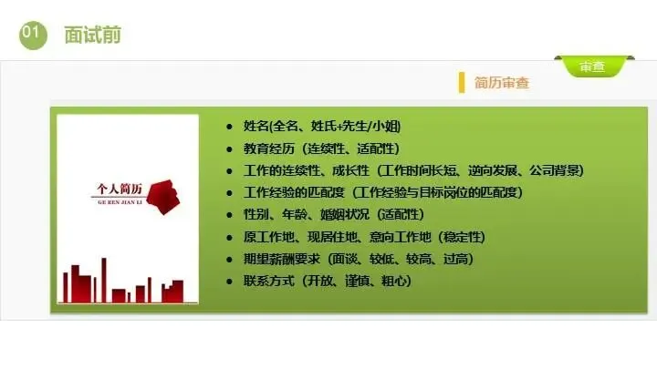 本资料为《业务面试官面试技巧培训(PPT课件)》,资料目录为“HR人力资源管理宝典-招聘面试-业务面试官面试技巧培训.ppt”,欢迎加入会员领取!