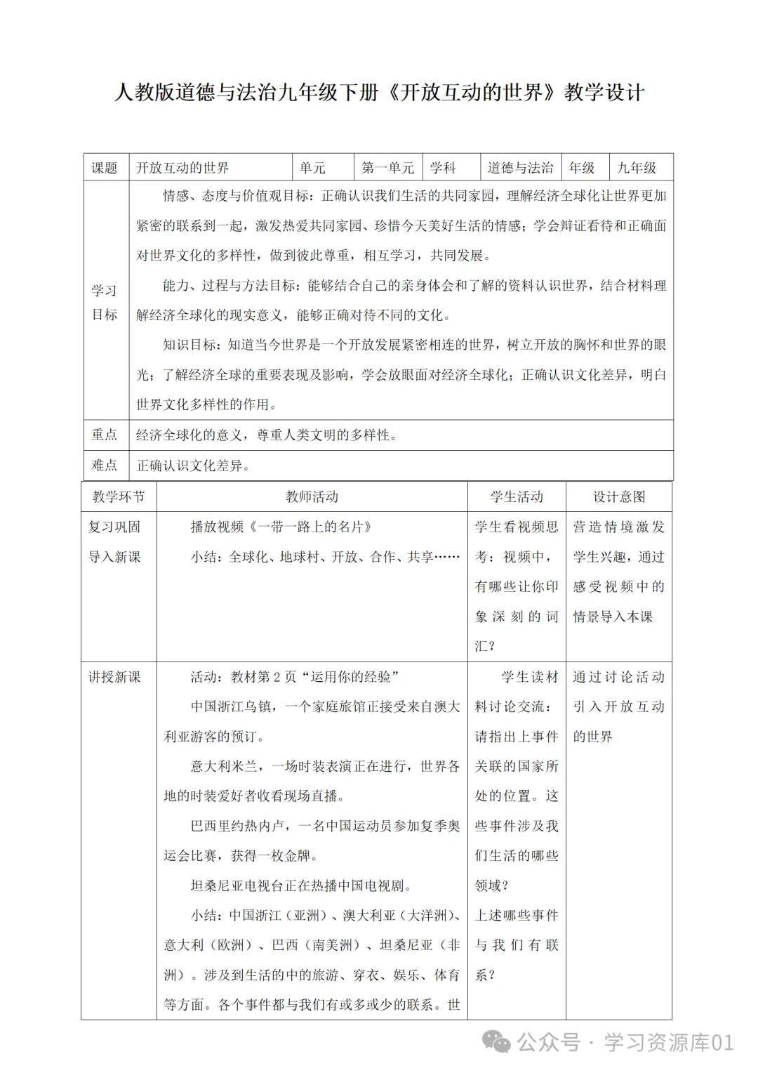 统编人教版道德与法治 九年级下册 课件+教案+习题 单元测试,下载即用!