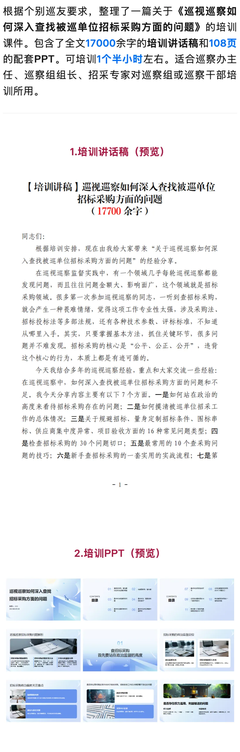 【巡视巡察培训课件】《巡视巡察如何深入查找被巡单位招标采购方面的问题》(17000字的讲稿+108页的PPT)