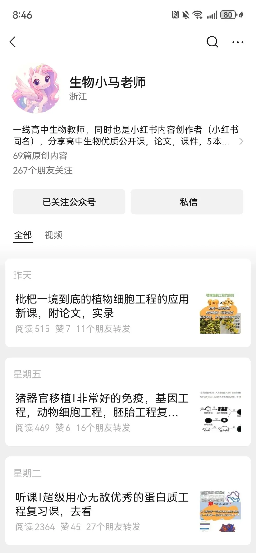 另外主页有发了不少优质的新课,复习课,还发了5本书的知识整理判断,可以主页看看,同名小红书(生物小马老师)主页有更多课件,可以点合集看的。