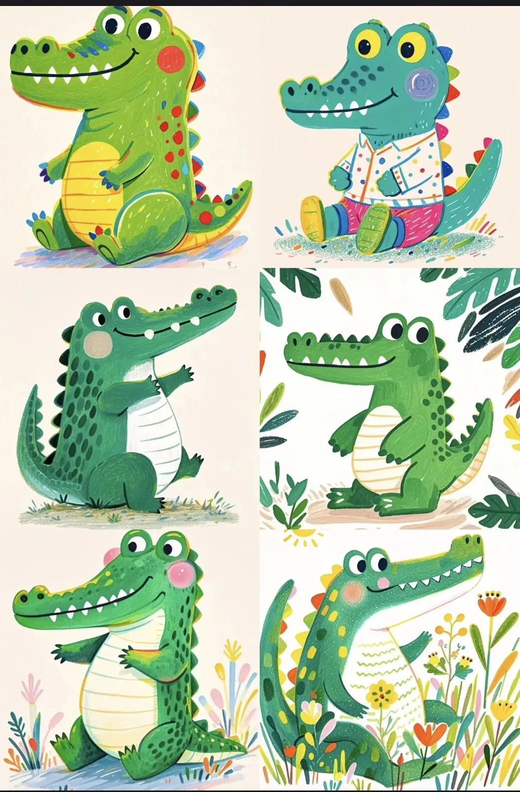 4. 文字装饰:剪出白色方块,写上“鳄鱼怕怕”“啊疼!”等文字,贴在画面合适位置。