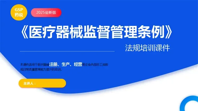 为遵守国家医疗器械相关的政策法规以及执行,本公众号推出了最新版2025版《医疗器械监督管理条例》培训课件。 本课件适用于医疗器械上市许可持有人、注册、生产、经营等相关企业及人员的医疗器械法规培训,课件内容全面、有对《条例》的修订背景、行业的前景分析以及条款的解析,图文并茂,不再枯燥,还有对法律责任处罚力度的简单记忆讲解,以及案例分享。 以下为修改后的2025版《医疗器械监督管理条例》最新培训课件PPT,本课件分为三大部分的内容,其中重点讲解针对医疗器械上市许可持有人、注册、生产以及经营(批发或连锁)等企业相关的管理要求条款、医疗器械经营违规的的法律责任及违规案例分享等内容,全篇约190页,欢迎有需要的企业和质量管理人员,加微信联系!知识付费,欢迎有需要的朋友,请扫码联系!↓