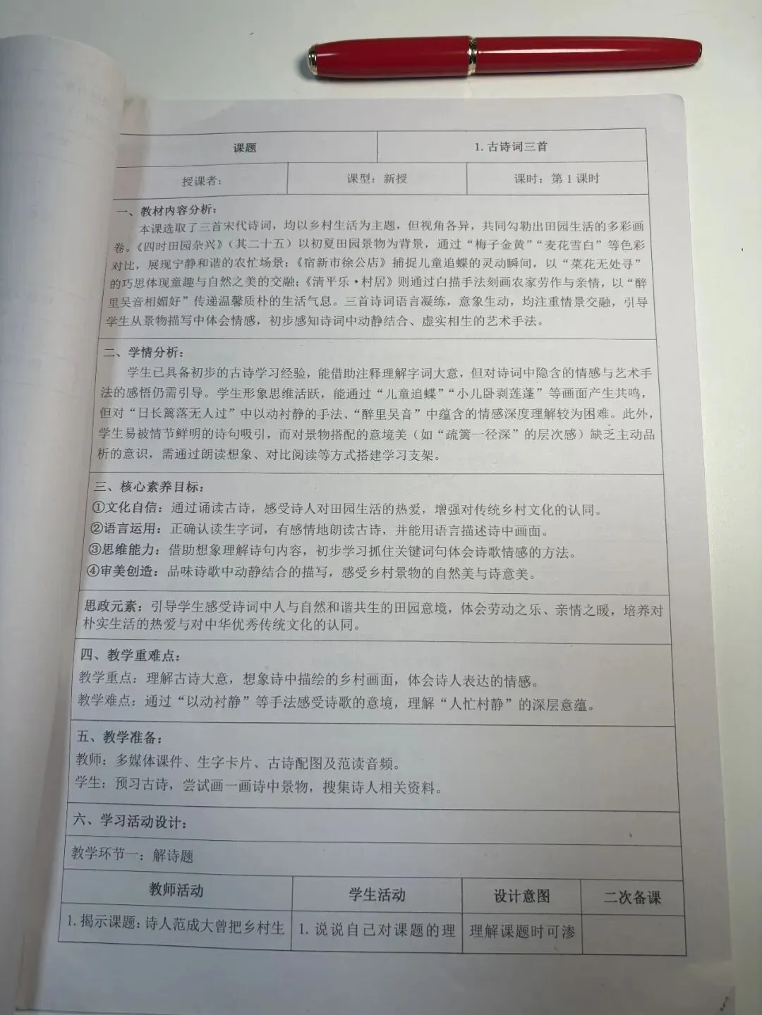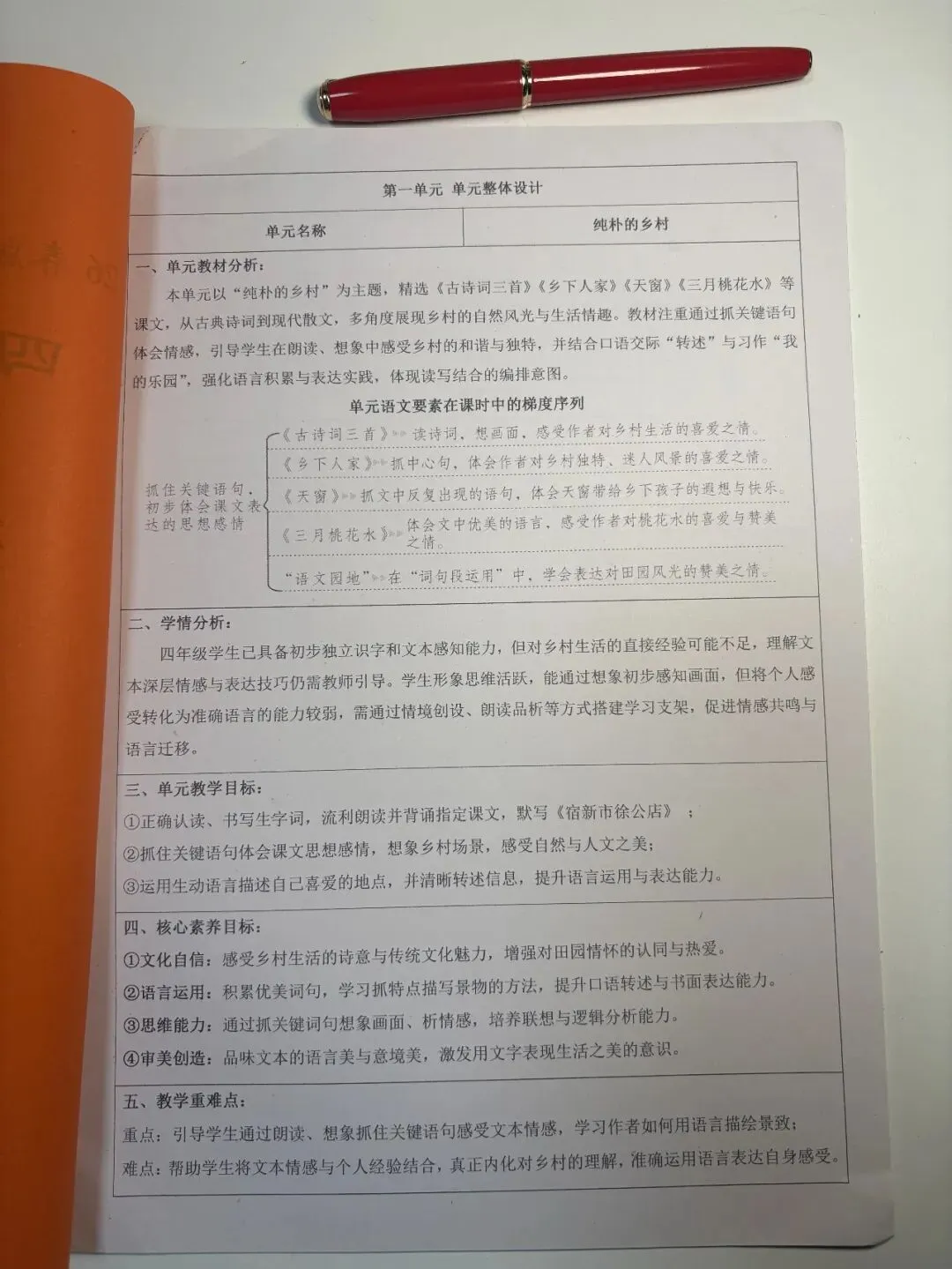 以下为整体单元设计和第一课的教学设计部分截图预览: