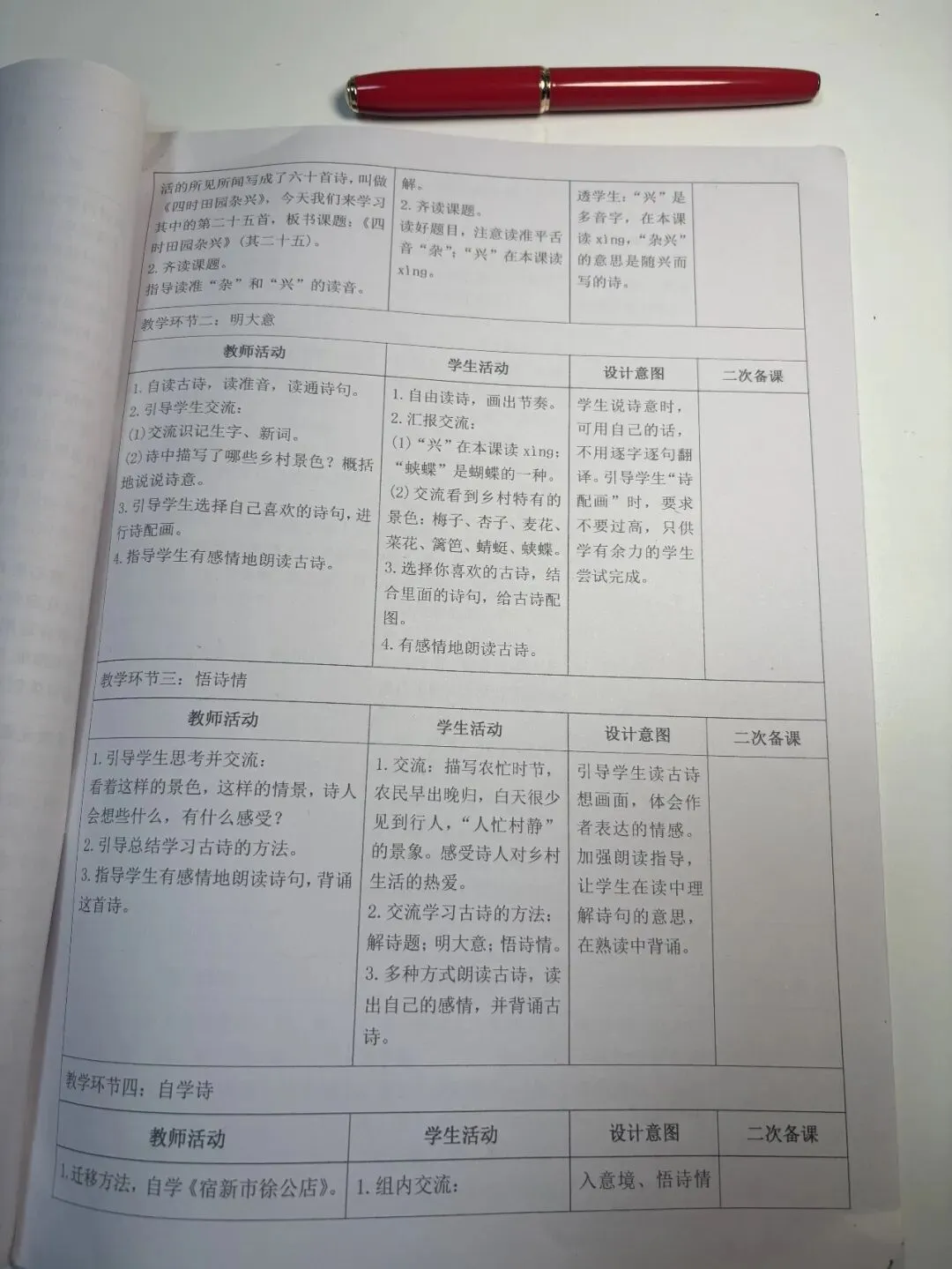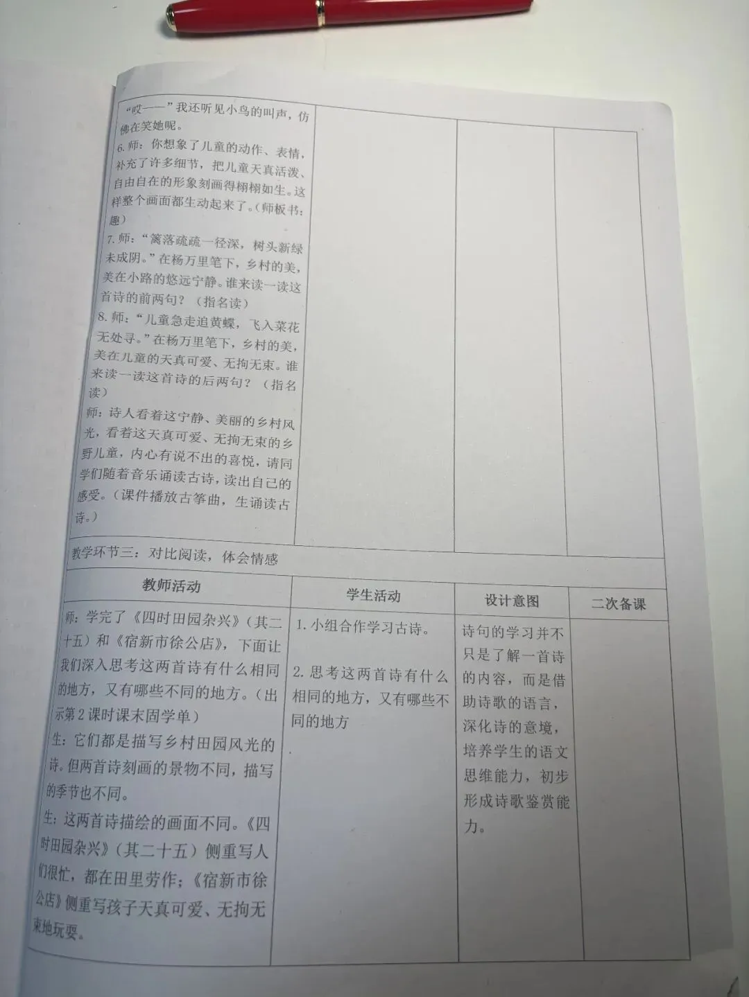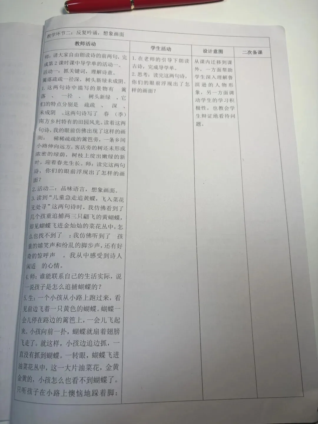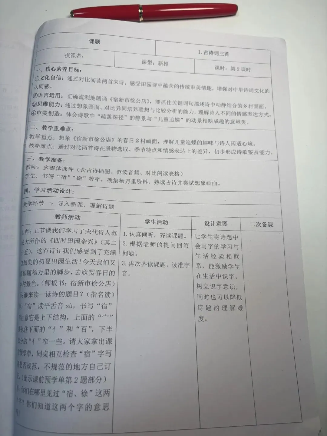 >备课教案分享:四年级下册语文核心素养教案备课必备,表格版有反思和无反思两个版本