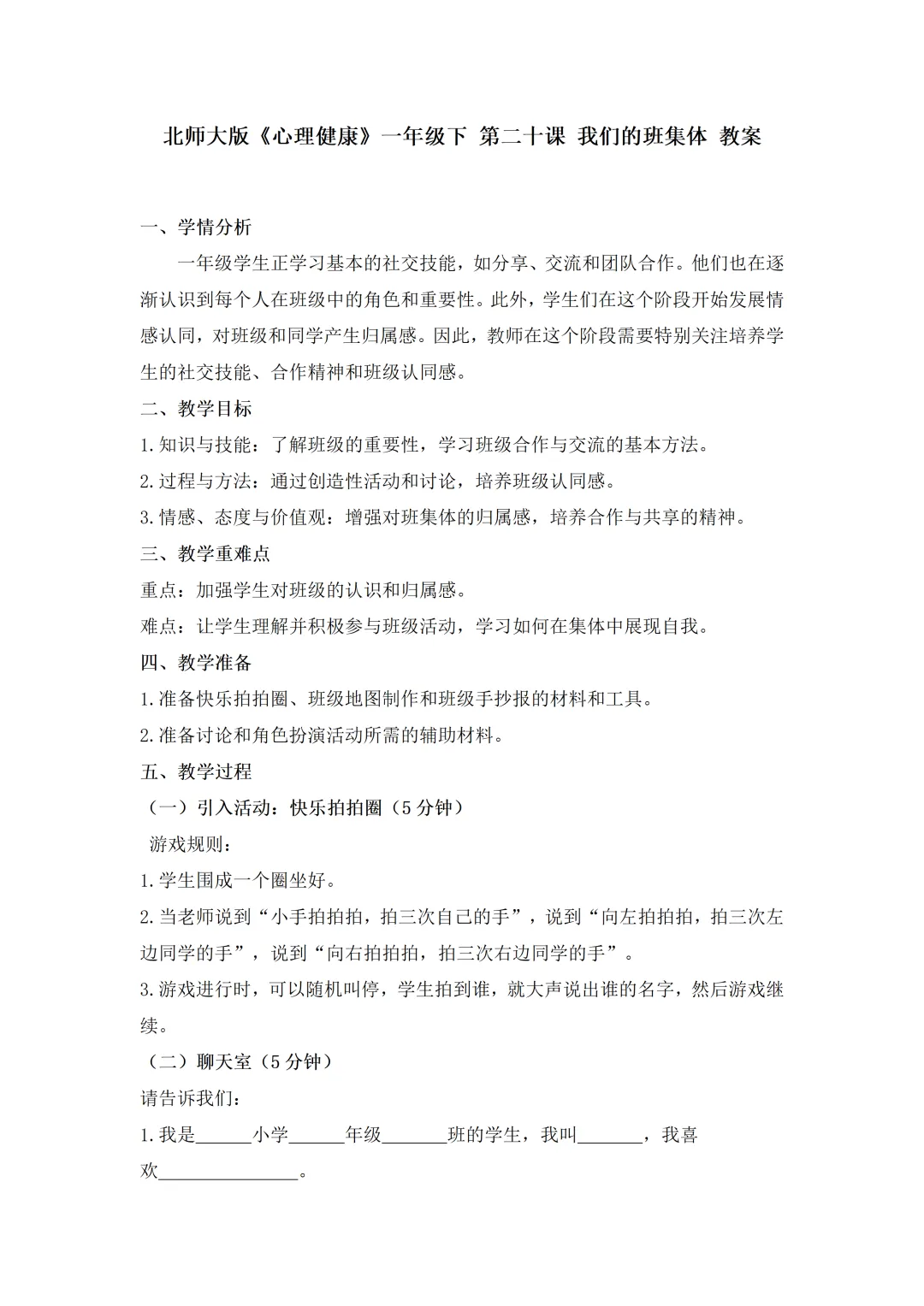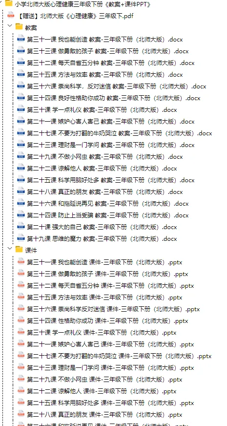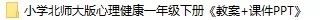 当前位置:首页>教案>小学心理健康一年级下册 教案+课件PPT(北师大版),可下载打印!