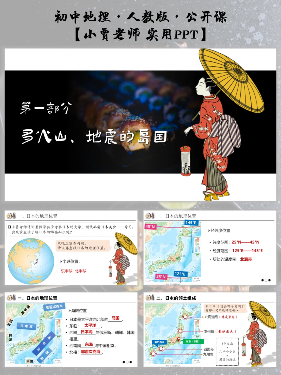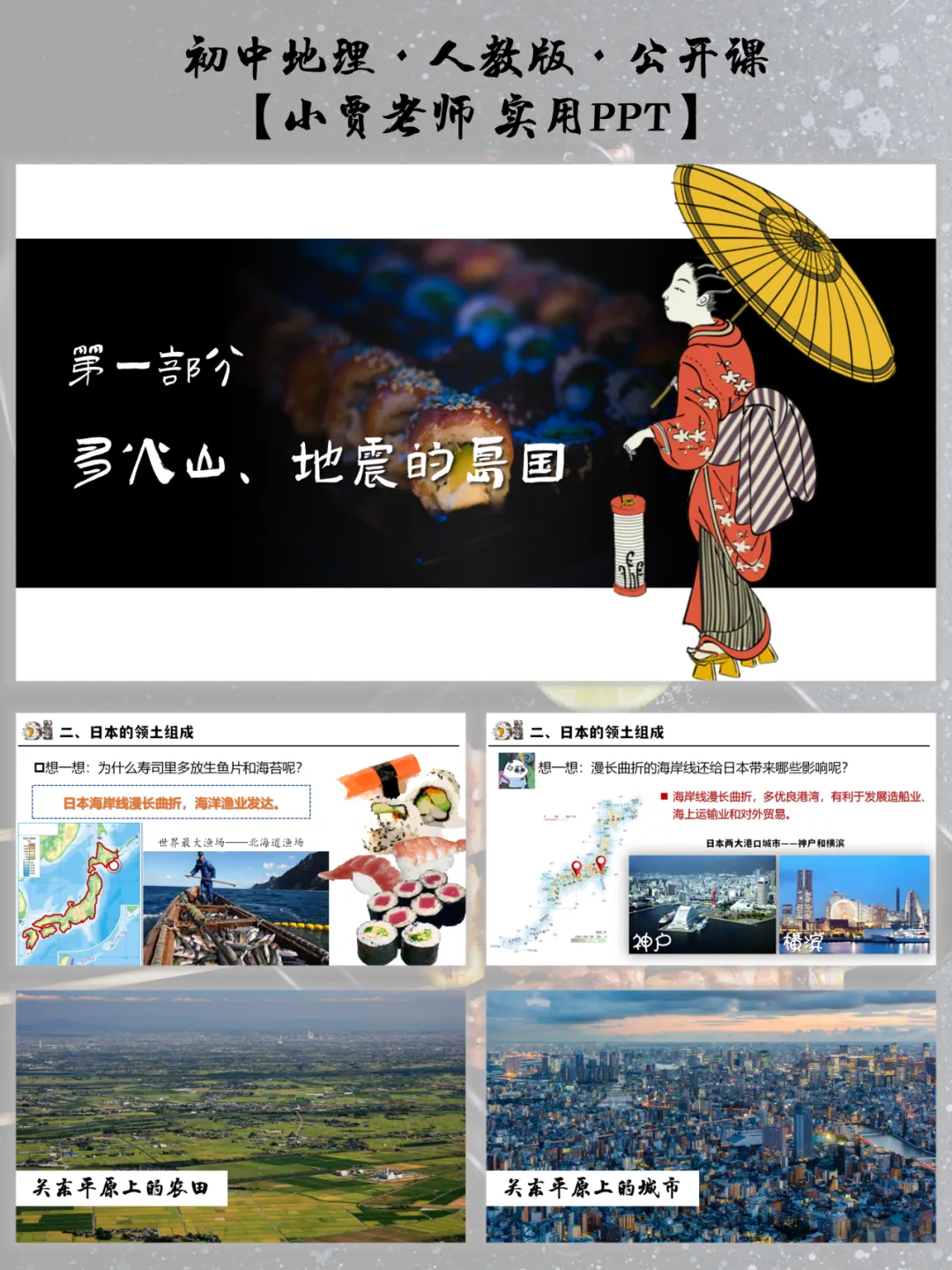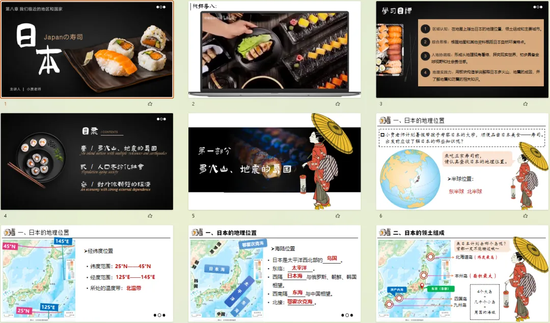 今日重点推荐人教版七下地理《我们临近的地区和国家——日本》32页精品课件聚焦教学实效。