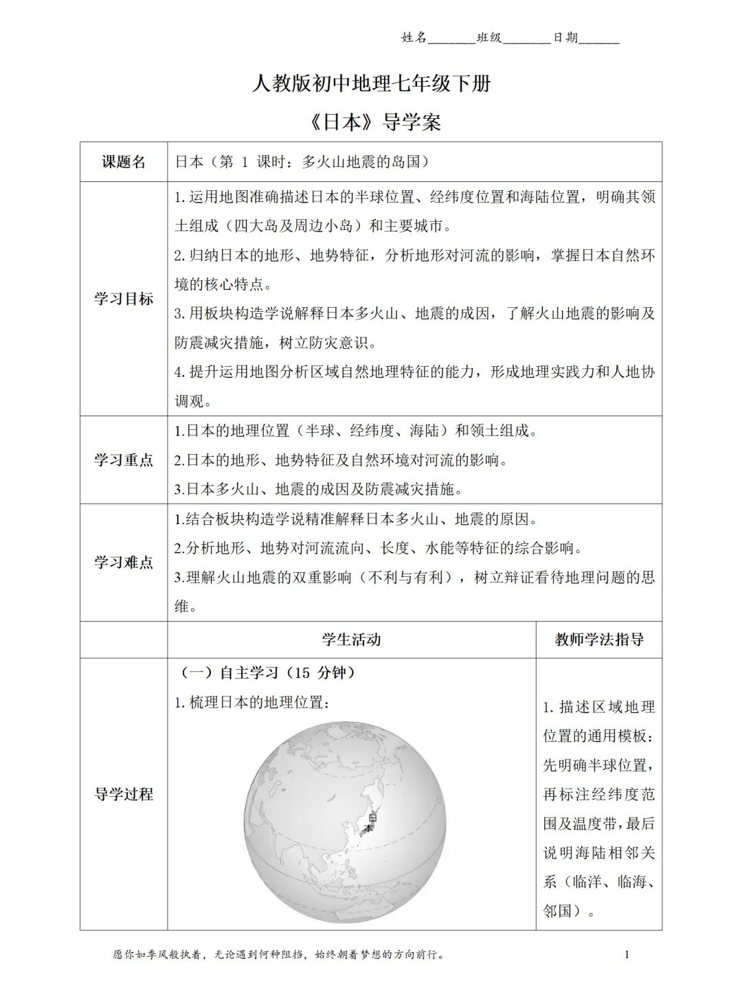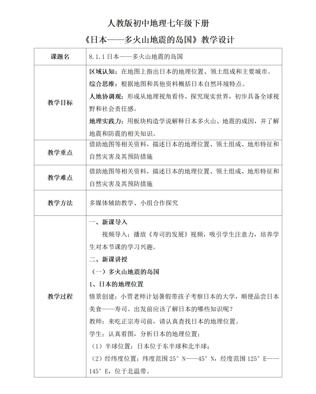 按 “半球 + 经纬度 + 海陆” 三维框架拆解:明确日本位于东半球北半球、北温带,是太平洋西北部岛国,东临太平洋、西隔日本海与亚欧大陆相望,巩固区域地理位置描述方法。