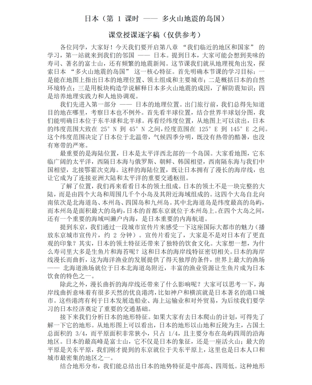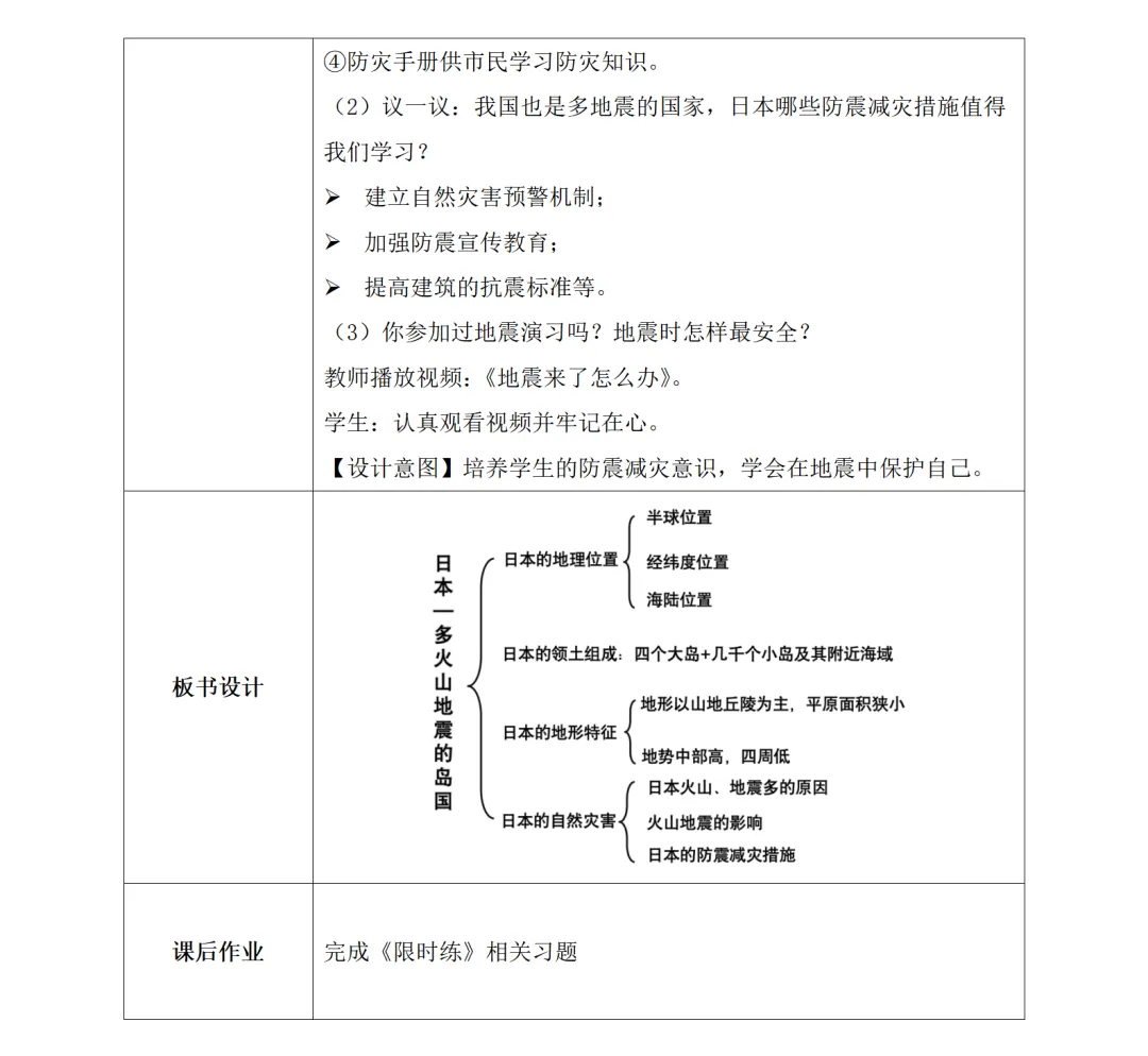 结合板块构造学说,解析日本地处亚欧板块与太平洋板块交界处、地壳活跃的核心成因;辩证分析火山地震的利弊影响,聚焦防震减灾措施(轻质耐震建筑、防震演习、预警机制等),并关联我国国情,强化实用价值与安全意识。