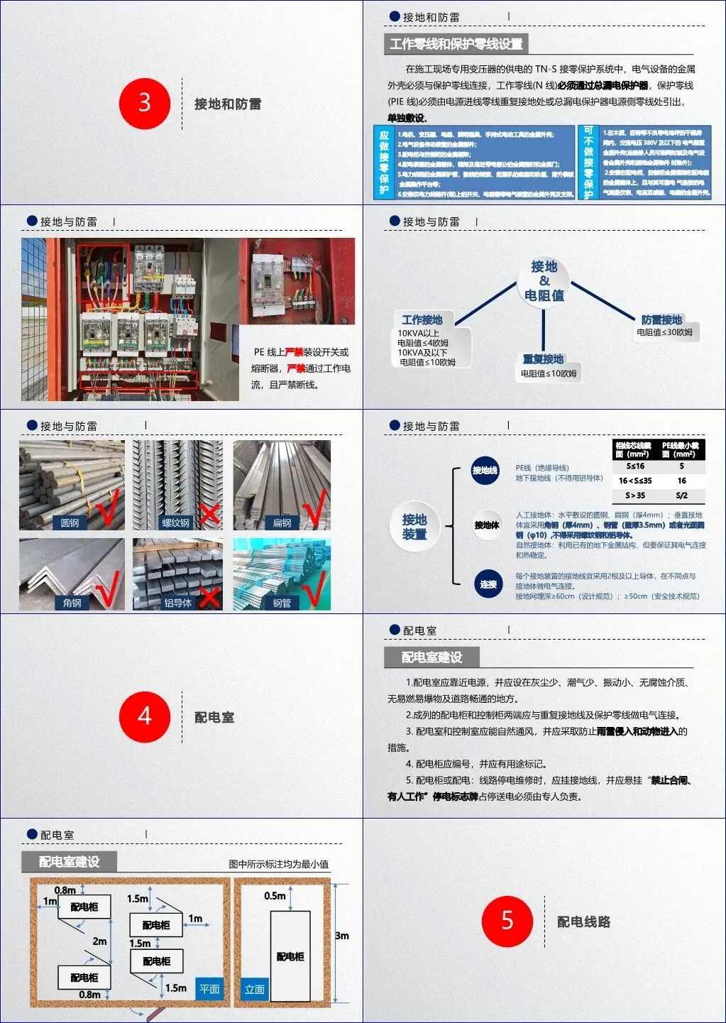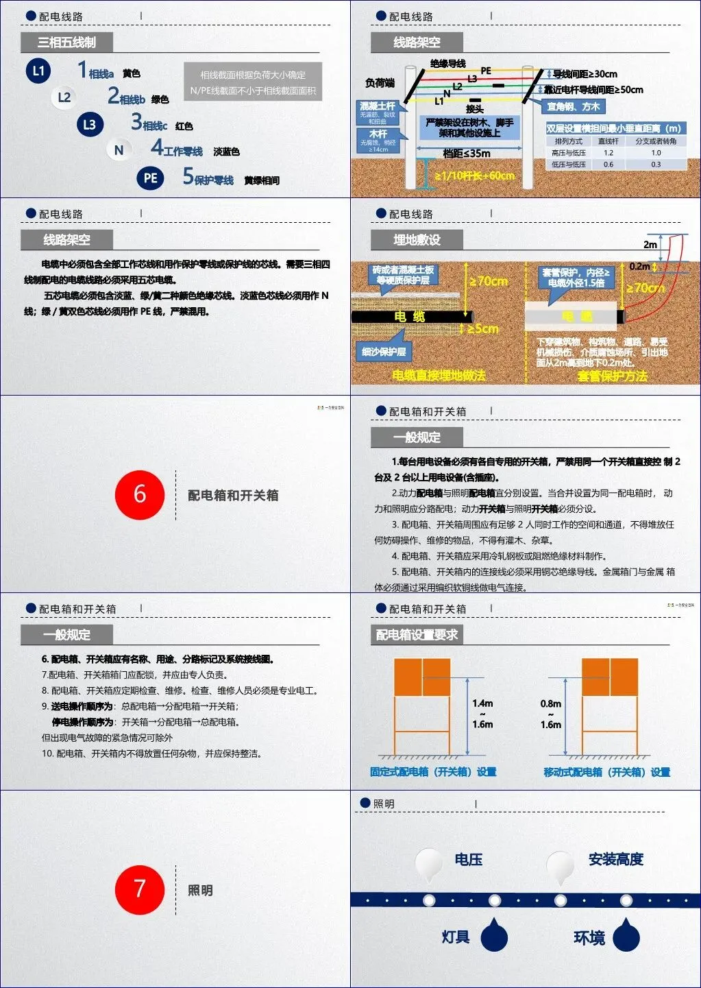 综上,该课件围绕施工现场临时用电的核心风险,构建了一套从系统设计、设备选型、安装规范到运行维护的全链条安全管理体系。