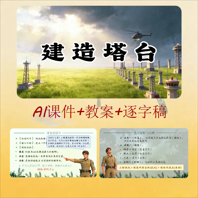 六年级科学公开课《建造塔台》ai赋能课件,太全面了,老师直接拿去用就行了,有+教学设计+逐字稿