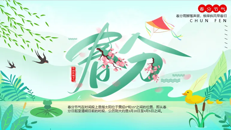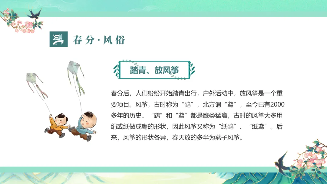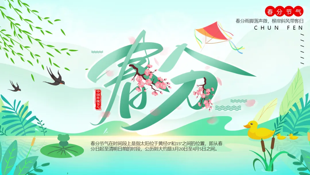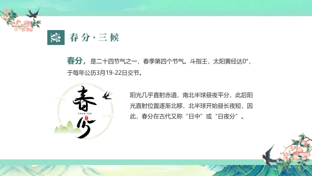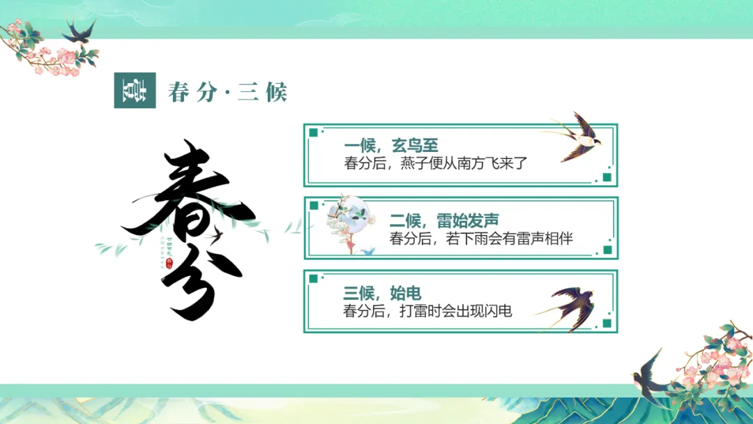 二十四节气 | 春分节气主题班会PPT课件,春分雨脚落声微,柳岸斜风带客归