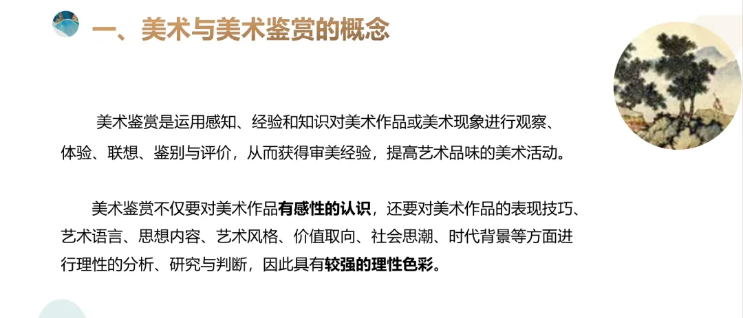 谈谈我个人对于大学生学习美术鉴赏的一些看法: