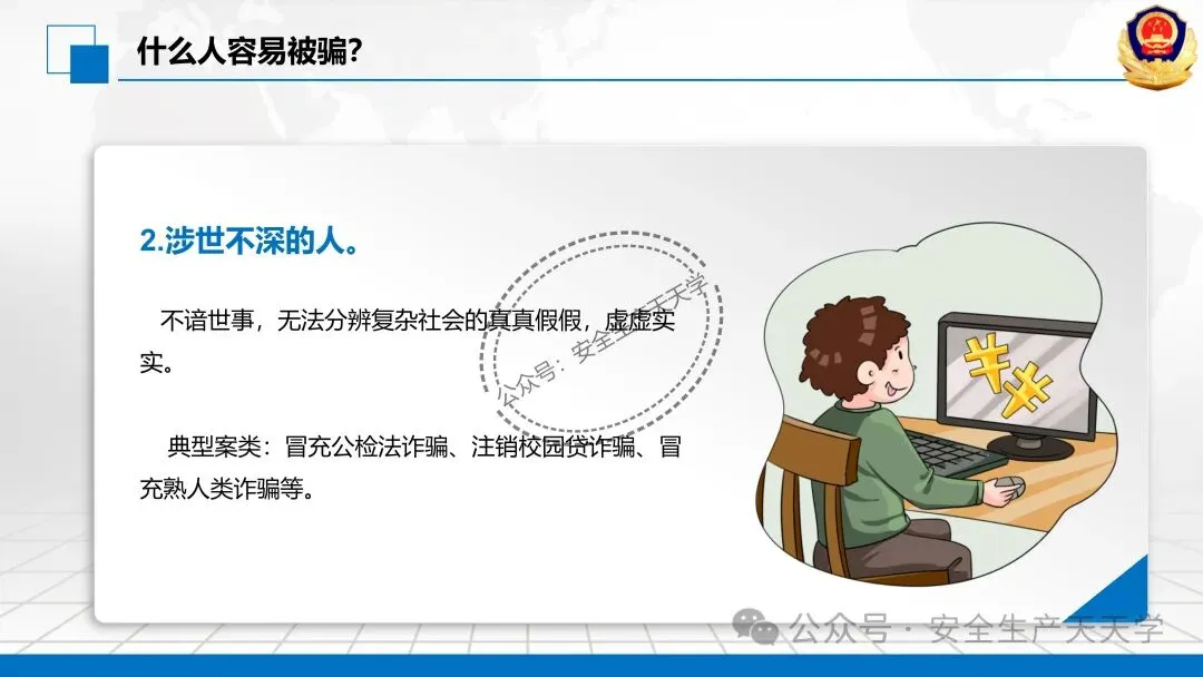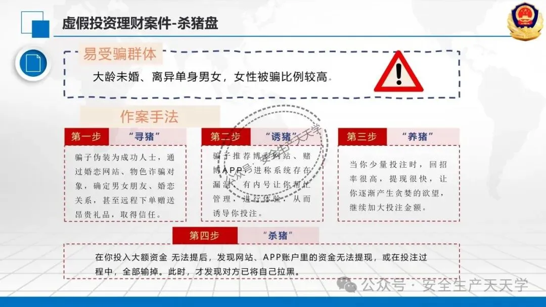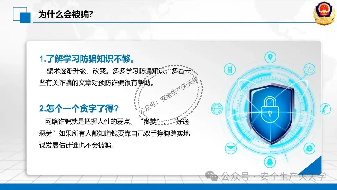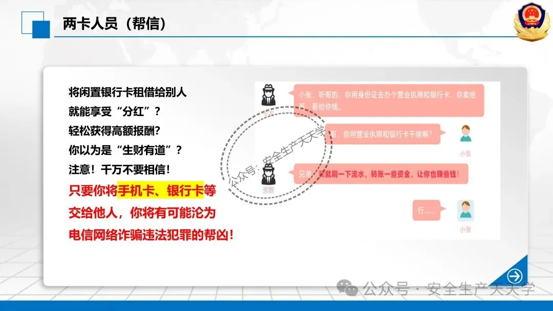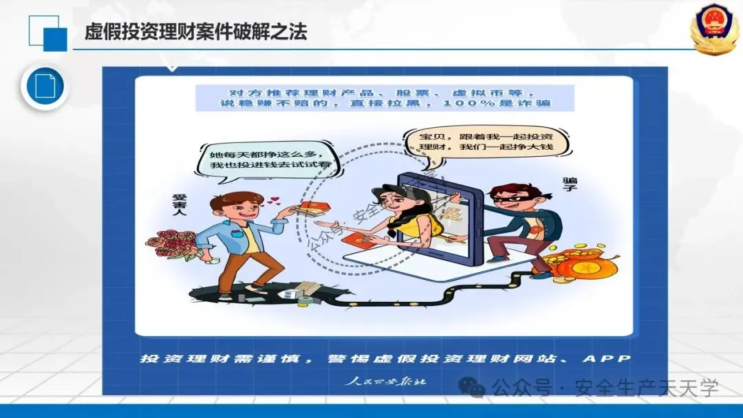 随着网络技术的发展,诈骗手段快速翻新,迷惑性不断增强,严重侵害公众财产安全与合法权益。防范新型电信网络诈骗风险提示,提醒广大群众警惕花样翻新的骗局,增强风险防范意识和识别能力,守护好自己的“钱袋子”。