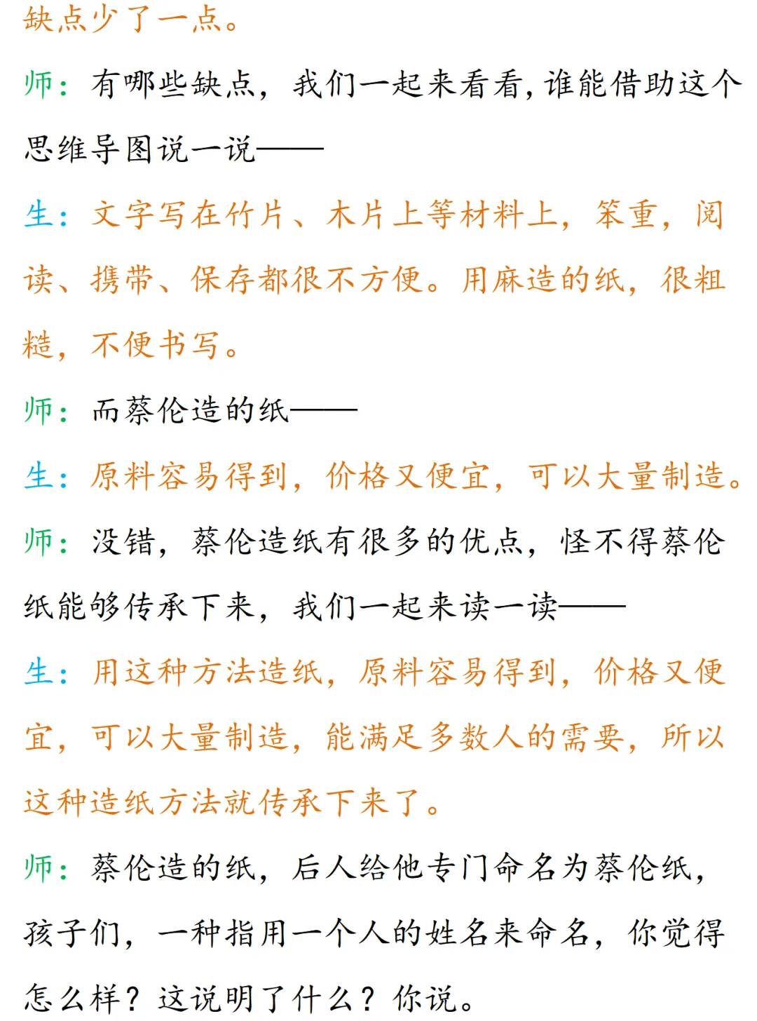 生:不对,因为麻造的纸比较粗糙,并不方便书写。