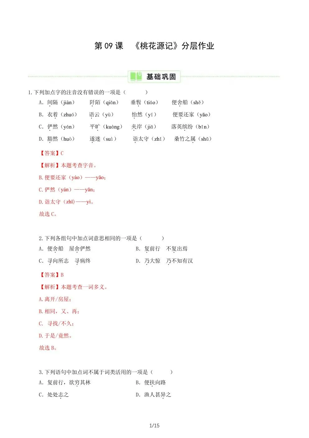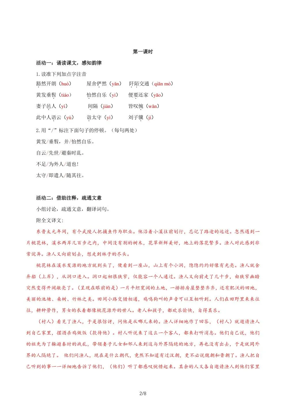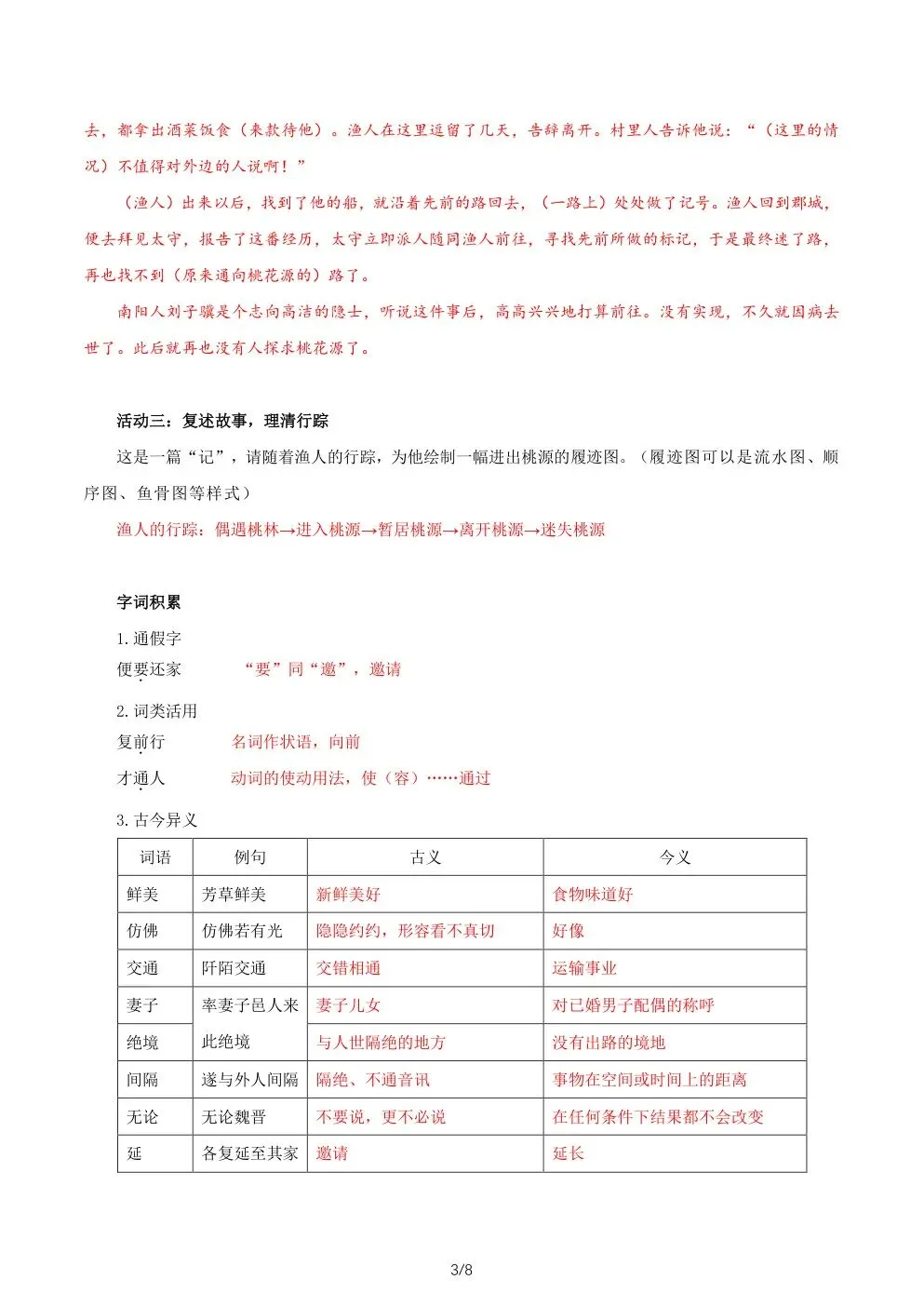 重点:积累文言一词多义;梳理渔人行踪,体会桃源之美。